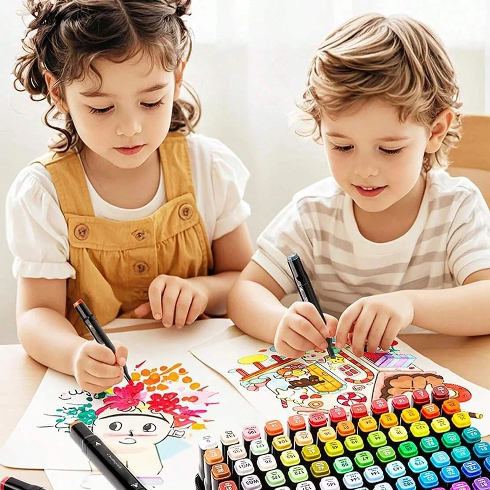 168-Color Alcohol Markers Set for Artists & Kids - Vibrant Drawing & Coloring Tools
