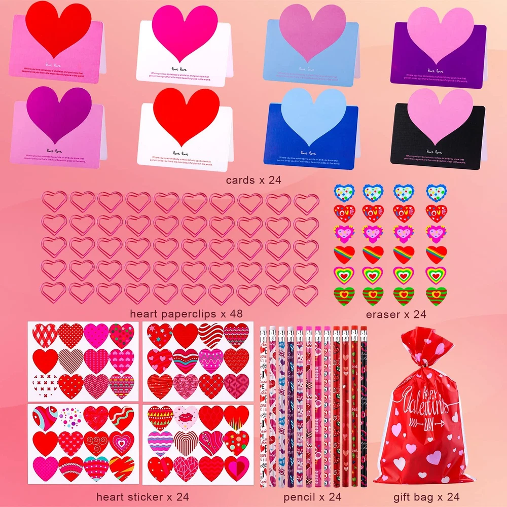 168pcs Valentines Exchange Stationery Set for Kids Classroom, Valentine's Day Gift with Heart Card Pencil Paperclip Eraser Sticker Gift Bag Party Favors Supplies for Children Boy Girl Friend School Specification: Color: multi colors Material: premium material Product Size: as shown in the detail picture Package details: 24 x Valentines day stationery sets Note: Due to manual measurement, the size and weight may have a certain error. Due to the difference between different monitors, there may be a slight color difference existed. Package Content: You will receive 24 Valentines day stationery sets, including 24 x pencils, 24 x heart sticker, 24 x heart erasers, 48 x heart paperclips, 24 x Valentine cards and 24 x gift bags. The perfect combination will be preferred by children. Premium Material: The Valentine exchange gifts for classroom are made of premium material, high quality and no harm to our body. Providing great using experience. Valentines' Elements: The Valentines day stationery kids gift set are designed with adorable love-heart patterns, and there is blank space on the cards for kids to leave their messages on. Attractive to young girls and boys. Easy to Use: The valentines day gifts sets are learning stationery, with beautiful and lovely patterns, they encourage kids to be more interested in learning or writing for their friends and someone important to him or her. Valentines Exchange Gift: Perfect gift sets for Children's valentines' gifts, classroom exchange gifts, classroom rewards, prize of class or school events, etc. Shipping from the USA All of our products are shipped from the USA, ensuring quick delivery to your destination. Payment We offer the following payment methods: PayPal, credit card, bank transfer, and eBay's secure payment system. Free Shipping & Free Returns Shipping within the USA is FREE. Additionally, any return is absolutely free for you. Risk-Free Purchase You have the option to return an item within 30 days without any justification. We cover the return shipping costs! Fast Shipping We ship immediately upon receipt of payment. Generally, the package is delivered within 2-3 days in the USA. If it takes longer, we will contact you. Quality and Costs Made in Europe, USA, China No customs fees or additional charges Total satisfaction guarantee Invoice with declared VAT available upon request in .pdf format Feedback Your feedback is very important to us. After you pay for your purchase, you will automatically receive positive feedback from us.