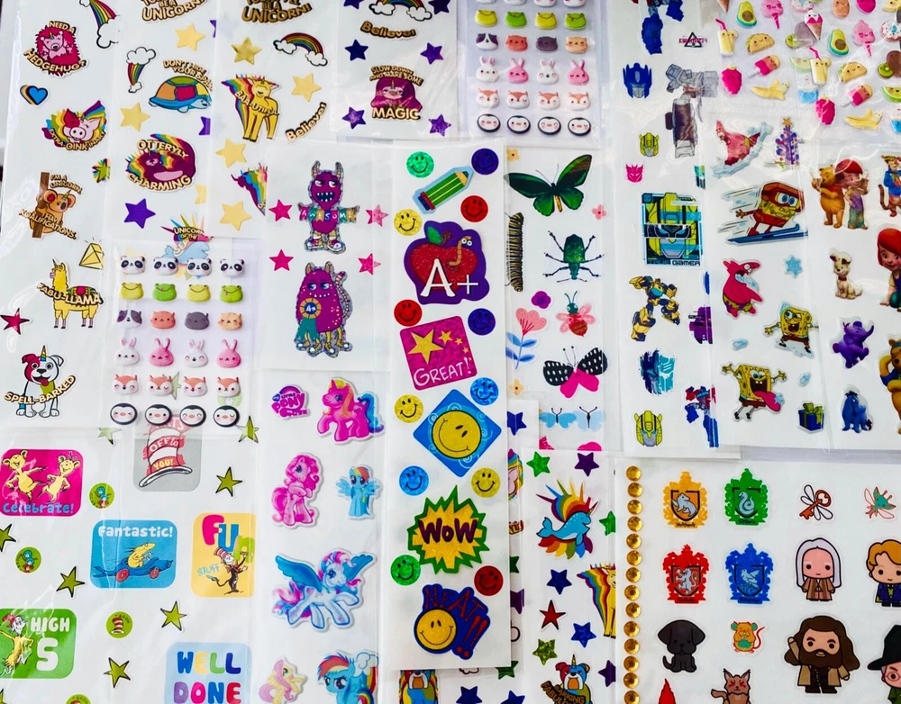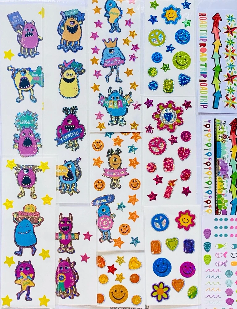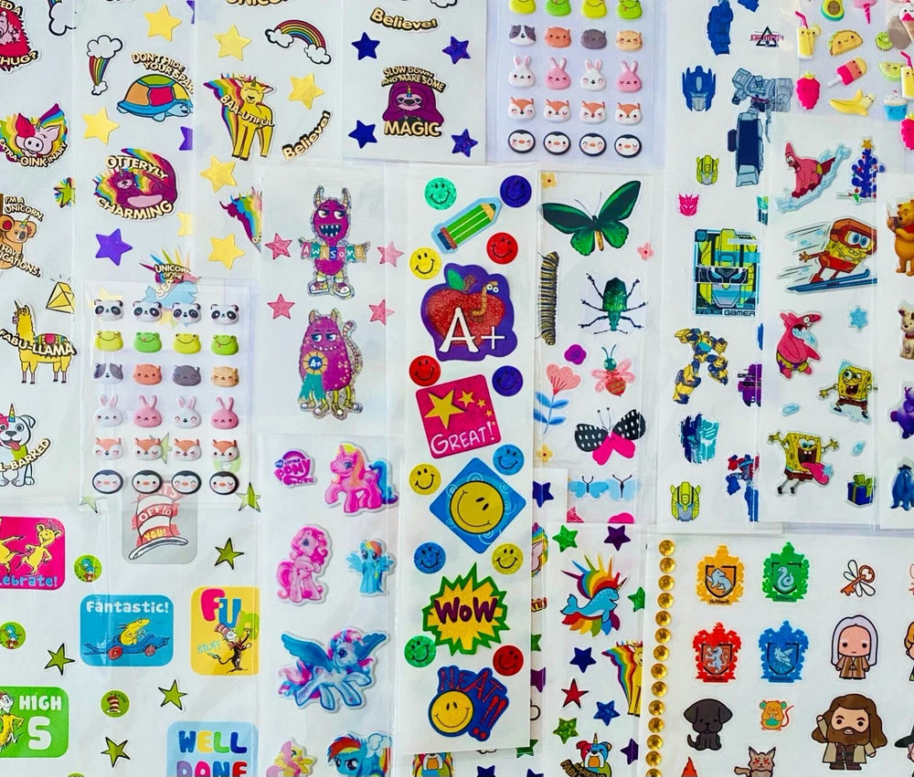 Popular Mixed Sticker Lot | The Ultimate Kit | Qty. 169+ Stickers | High Quality Only! Fun Assortment of Glitter, Glossy, Foil, Metallic, Mods, Gems, Puffy, Scrapbook, Cartoons, Bubble, Pop Up ~ Stickers For Everyone! This great bundle will include 169+ Stickers overall! I have included a large variety of pictures of the assortment available. The pictures give you an idea of what you will be receiving. Please Note: You will not receive everything pictured. Please contact me with any special requests. This HUGE Variety of fun designs stickers can be used in parties, classroom, school and home, good for reward for students, potty training, adding inside a birthday card, game activities, entertaining toddlers, etc. Perfect Gifts for Kids & all Occasions: Can be given as a gift for kids, girls, boys, toddlers, teens, students, friends, and classmates, they will love it!