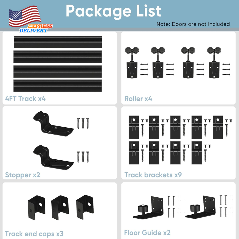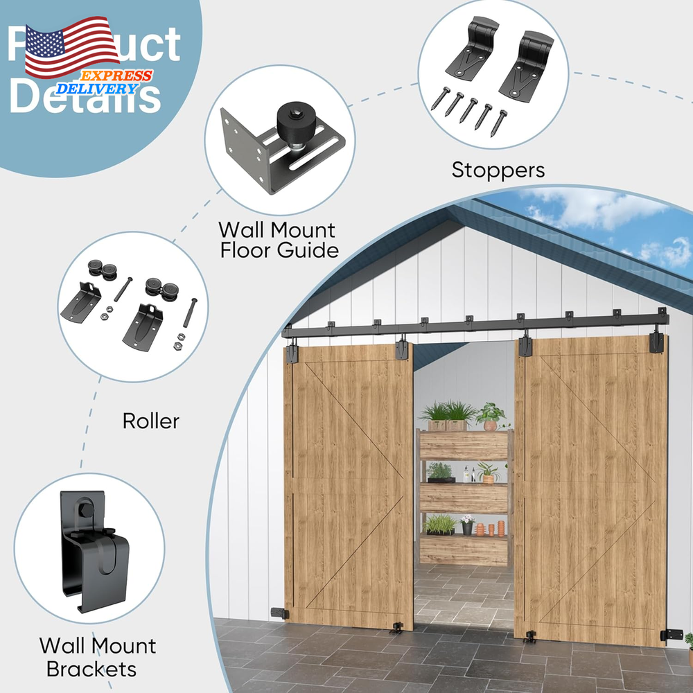 Store New Arrivals Add to Favorite View Feedback Contact 16FT Heavy Du Box Rail Exterior Barn Door Hardware Kit Sliding Door Hardware Description Item model number GZ-TSQAL11 Size Name 16 Feet Style Ourdoor Assembly Required Yes Color Black Material Steel Batteries Required? No Item Weight 50.1 pounds Color Name Black Size 16 Feet Product Dimensions 57 x 8 x 4 inches Included Components hardware kit Built for the Outdoors: With an anti-corrosion finish, this sliding door track is strong enough to withstand harsh outdoor environments, whether it's rainy or snowy. Ideal for sheds, stables, outdoor barns, and garages, providing years of protection and durability Heavy Duty Structure: Crafted from high-quality galvanized steel, this heavy duty barn door hardware kit is built to ensure long-lasting durability in both outdoor and indoor environments. It supports door panels up to 450 lbs with ease Easy Installation: With 4 x 48" track, 3 x Track end caps, 9 x Track brackets, 4 x Hangers with door strap, 2 x Galvanized steel floor guide, 2 x Stoppers, Screws & Step-by-step instructions, this barn door hardware kit includes everything you need for a seamless setup—Door and handle not included Dimensions: Engineered for strength, this box rail barn door hardware kit supports door thickness from 1-3/8" to 1-3/4", and up to 72" wide. Perfect for large or solid wood outdoor doors that demand serious support Smooth & Silent: Featuring precision double-axis steel rollers, this sliding door hardware kit glides effortlessly, no squeaks, no jams. Reinforced tracks and steel floor guides keep your door stable—even in rough weather Reliable Quality & Support: Designed by BarnBase for serious outdoor use, this barndoor hardware kit comes with full customer support. Got questions? Our team is ready to help—fast, friendly, and knowledgeable Product description ABOUT US We offer the best prices around on high quality products. Our E-store includes media such as books, movies, music and games while offering electronics, toys, sporting apparel, clothing, tools, general home, garden items and more. SHIPPING We are always working hard to ensure your package arrives as soon as possible. Please understand that some factors like weather, high postal traffic, and the performance of shipping companies are outside of our control. We offer free shipping to the lower 48 states and ship within 2 business days of payment, usually sooner. We do not accept P.O. Boxes. Please provide a physical address. For shipping outside of the continental USA, we only use eBay's Global Shipping Program.The item is shipped to KY and then sent to the rest of the world. International customers are responsible for all duties and taxes. Continue to check out in order to calculate costs for shipping the item to your country. Messages regarding eBay's Global Shipping Program MUST be directed at eBay EXCLUSIVELY. RETURNS We offer a 30-Day Return Policy on items which you are not completely satisfied with. You have the option for a full-refund or an exchange of the item. No returns are available on items shipped outside of the USA. PAYMENT We accept PayPal. CONTACT US This page content is yet to come Please ad us to your favorite seller and visit again later Thank You CUSTOMER SATISFACTION We try our very best to make sure every customer is completely satisfied. If there's a problem, message us! We're happy to help. WE ACCEPT Copyright © 2021 AutoDS. | All Rights Reserved