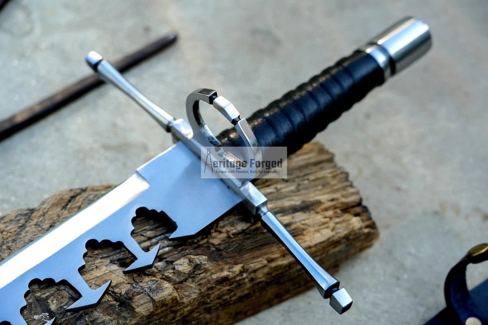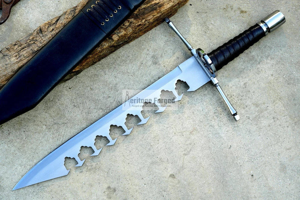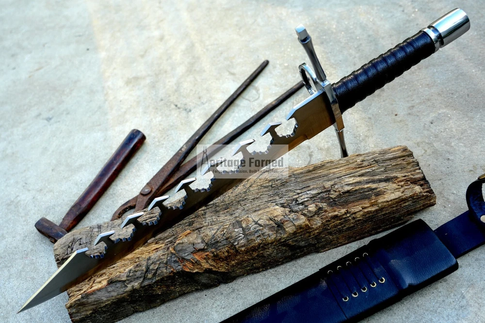 My blades are meticulously hand-forged from high-quality 5160 leaf spring steel, a material renowned for its durability and resilience. Using traditional forging techniques, each blade undergoes a rigorous crafting process that ensures both strength and precision. After shaping, the blades are tempered with water to achieve optimal hardness and flexibility. The final product is sharpened to a keen edge, making it ready use. This combination of traditional methods and modern steel technology results in blades that are both reliable and enduring, designed to perform exceptionally in a variety of tasks. Product Specifications: Blade Length: 16 inches Handle Length:7 inches Total Length: 23 inches Blade Weight:766 Grams Handle Material: Rosewood (leather Wrapped )
