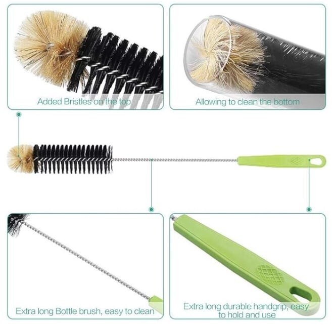 Narrow Bottle Cleaning Brush 16 Inches Long Handle Flexible Brush Bottle Cleaner 16inc long bottle brush can easily clean the bottom of the bottle and the entire interior area. Stainless steel wire flexible bristles, flexible to clean the hardest to clean internal gaps. The sturdy handle allows you to hold it tightly and store and use it, cleaning quickly and easily, the hanging hole is convenient for storage, keep the brush dry and clean. Add extra bristles to the end of the brush to thoroughly clean the bottom of the bottle. The multi-purpose long brush is thin and fits all narrow-necked beer, wine bottles, kombucha bottles, kefir bottles, brewing bottles, narrow-necked buckets, growlers, and many hummingbird feeding ports. Free Shipping, Order Now!!!!!