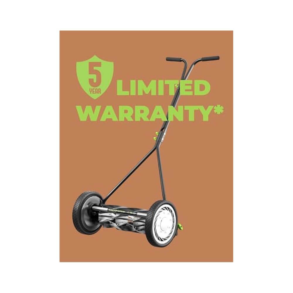 18-Inch 5-Blade Push Reel Lawn Mower with Adjustable Height & Grass Catcher