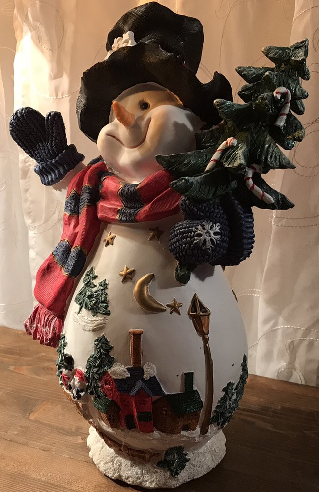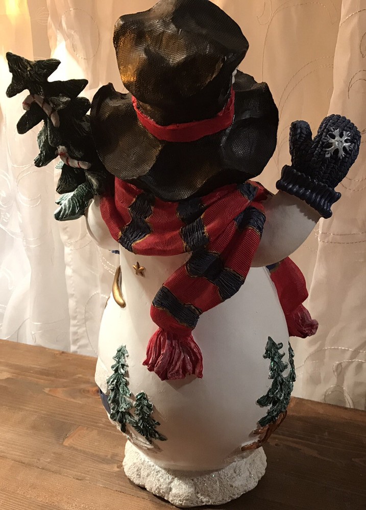 Snowman Figure with Candy Cane Tree 16” tall. Measurements approximately: 16” tall 10” wide