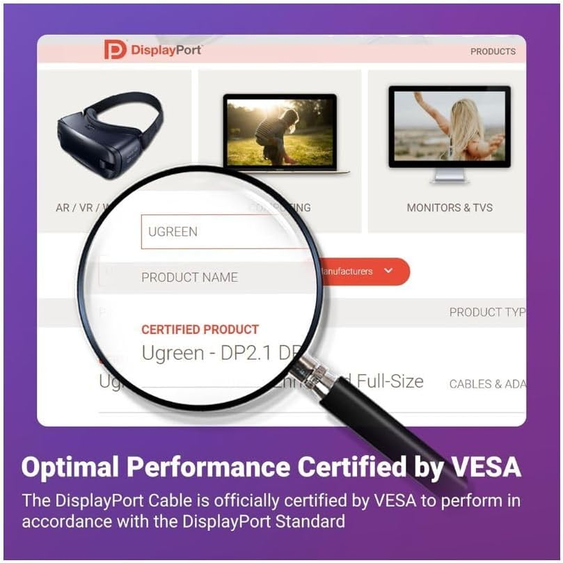 16K 6.6FT Displayport Cable 2.1 [VESA Certified] DP2.1 40Gbps Support 8K@240Hz 4K@240Hz HDR, HDCP, DSC 1.2A, Braided Display Port Cable Cord Compatible Freesync G-Sync Video Card Monitor Upgrade your daily routine with 16K 6.6FT Displayport Cable 2.1 [VESA Certified] DP2.1 40Gbps Support 8K@240Hz 4K@240Hz HDR, HDCP, DSC 1.2A, Braided Display Port Cable Cord Compatible Freesync G-Sync Video Card Monitor — premium build for reliable performance and long-lasting value. Enjoy fast handling, friendly support, and a risk-free purchase backed by easy returns. Trusted seller with excellent feedback Popular item — often sells out quickly 30-day returns, no questions asked Key Benefits Feel the quality: durable materials and clean finish Save time: quick setup and easy everyday use Peace of mind: hassle-free support via eBay Messages Smart value: excellent price–performance for home, office, hobby, or professional use Item Specifics Item model number 15384 Number of Items 1 Specification Met Vesa Unit Count 1 Count Connector Gender Male-to-Male Outer Material Nylon Number of Pins 1 Package Dimensions 7.68 x 7.32 x 0.75 inches Manufacturer Group Limited Indoor/Outdoor Usage Indoor, Outdoor Connector Type DisplayPort Item Weight 1.1 pounds Special Feature Digital Display, Data Transfer, High Speed, Heat Resistant, Alu Braided, VESA Certified Compatible Phone Models No Compatible Phone Models Data Transfer Rate 40 Gigabits Per Second Color Purple Cable Type Display Port Compatible Devices function(f) {var _np=(window.P._namespace("DetailPageProductOverviewTemplatesJava"));if(_np.guardFatal){_np.guardFatal(f)(_np);}else{f(_np);}}(function(P) { P.when('A').execute(function(A){ A.on('a:truncate:po-attribute-truncate-3:updated', function(data) { var isTruncated = !data.truncateInstance.getIfTextFits(); var seeMoreElement = document.getElementById('po-attribute-see-more-id-3'); if(seeMoreElement) { seeMoreElement.style.display = isTruncated ? '' : 'none'; } }) }); })); Nvidia RTX 5090/RTX 5080/RTX 3090/RTX 4090/RTX 4080ti/RTX 5070 Ti/RTX 4070ti graphics cards, and AMD Radeon RX 9070 XT/RX 6900 XT/RX 7900 XT/RX 9060 XT graphics cards, and Odyssey G8/G9, Ben Q, Alienware, LG Ultragear monitors, HDTV, Fire TV, computer See more Shape Round Frequency 30 Hz Recommended Uses For Product Indoor, Playing games, outdoor Size 6.6FT Description Cutting Edge 16K DisplayPort Cable: UGREEN16K DisplayPort cable 2.1 supports high resolutions 16K@30Hz, 8K@240Hz, 4K@240Hz. And backward compatible with Display Port 1.4 1.3, 1.2. Single-screen video output of 16K@30Hz (DSC 1.2a), and dual-screen supported. The DP to DP cable also supports HDR, HDCP 2.2, FEC forward error correction and UHBR10 which ensure your immersive viewing experience. (Note: 20-pin is disabled with no power. No need to worry about the 20-pin issues.) VESA Certified 40Gbps DP Cable 2.1: This Display Port 2.1/2.0 cable features an unprecedented bandwidth of 40Gbps, nearly 3 times what was available in the previous DP 1.4 spec. Stable and high-speed transmission without signal loss. The DisplayPort cable also backward compatible with previous DP 1.4 and DP 1.2 standards. The monitor cable meets the VESA Standard and supports 3D&HDR and Dolby&eARC to provide you with amazing sound and image quality Optimized for Game Enthusiasts: The DP cable 2.1 is highly recommended for game setups as it works well with game monitors and graphics cards, delivering high-quality video and audio signals with no lag or interference. It supports FreeSync and G-Sync, which are essential for gaming. You can easily connect multiple monitors with Multi-Stream Transport (MST). Variable refresh rate (VRR) and auto low latency mode (ALLM) bring you smoother game experience especially in FPS, 3A and MOBA games Ultra Durability: UGREEN DisplayPort cable port with no buckle design can prevent accidental damage. DP cable 2.1 is made of 28AWG tinned copper and tinplate which features triple shielding and resistance with EMI. Aluminum alloy housing is resistant to rust and can accelerate heat dissipation. The Display Port cord has a strong nylon braided jacket, which is 10X more durable than PVC. It can provide higher connectivity and longer service life for better signal transmission Wide Compatibility: UGREEN 16K@30Hz DP cable is compatible with all devices with DP ports, compatible with Nvidia RTX 5090/RTX 5080/RTX 3090/RTX 4090/RTX 4080ti/RTX 5070ti/RTX 5050 graphics cards, and AMD Radeon RX 9070 XT/RX 6900 XT/RX 7900 XT/RX 9060 XT graphics cards, and Odyssey G8/G9, Ben Q, Alienware, LG Ultragear monitors, HDTV, Fire TV, computer and others. Support DP, DP++ modes, backward compatible 2.0/1.4/1.3/1.2 Product description UGREEN 16K DisplayPort Cable 2.1 / 2.0 for Smooth Viewing The video showcases the product in use. The video guides you through product setup. The video compares multiple products. The video shows the product being unpacked. UGREEN 16K DisplayPort Cable Merchant Video 1 240Hz High Refresh Rate 2 40Gbps Ultra High-Speed 3 Real-Time HDR 4 VESA Certified DP 2.1 1 Immersive Game-Playing 2 Professional Work 3 AR Scenarios 4 Realistic 3D Visual Feast DisplayPort 2.1 Reinforced Joint Bare Copper Nylon Braided Comparison of UGREEN Video Cables Add to Cart Add to Cart Price $13.99 $ 13 . 99 $29.99 $ 29 . 99 $19.99 $ 19 . 99 $15.99 $ 15 . 99 $9.34 $ 9 . 34 $29.99 $ 29 . 99 $7.99 $ 7 . 99 Connectors DP to DP DP to HDMI DP to HDMI Adapter DP to DP DisplayPort to HDMI DP to HDMI Bidirectional DP to DP Resolution 16K@30Hz 8K@60Hz 8K@60Hz 16K@60Hz 4K 4K@60Hz/4K@30Hz 8K@60Hz Cable Length 3.3/6.6/10FT 0.66FT Adapter 1.6/3.3/6.6FT Adapter 6.6FT 3.3/6.6/10/16FT Version DP2.1 HDMI 2.1/DP 1.4 HDMI 2.1/DP 1.4 DP2.1 DP 1.2 DP1.2 DP1.4 Material Aluminum Case+Nylon Braided Aluminum Case+Nylon Braided Aluminum Case Aluminum Case+Nylon Braided Aluminum case Aluminum Case+Nylon Braided PVC Case+Nylon Braided 7.32 inches x 7.68 inches x 0.75 inches. Weight: 1.1 lb Package Includes 1× 16K 6.6F
