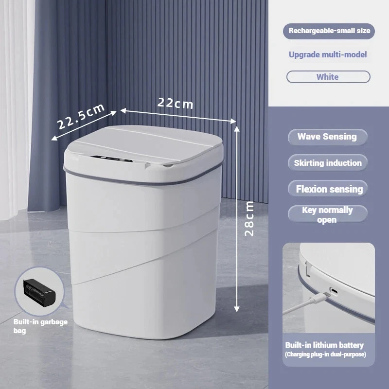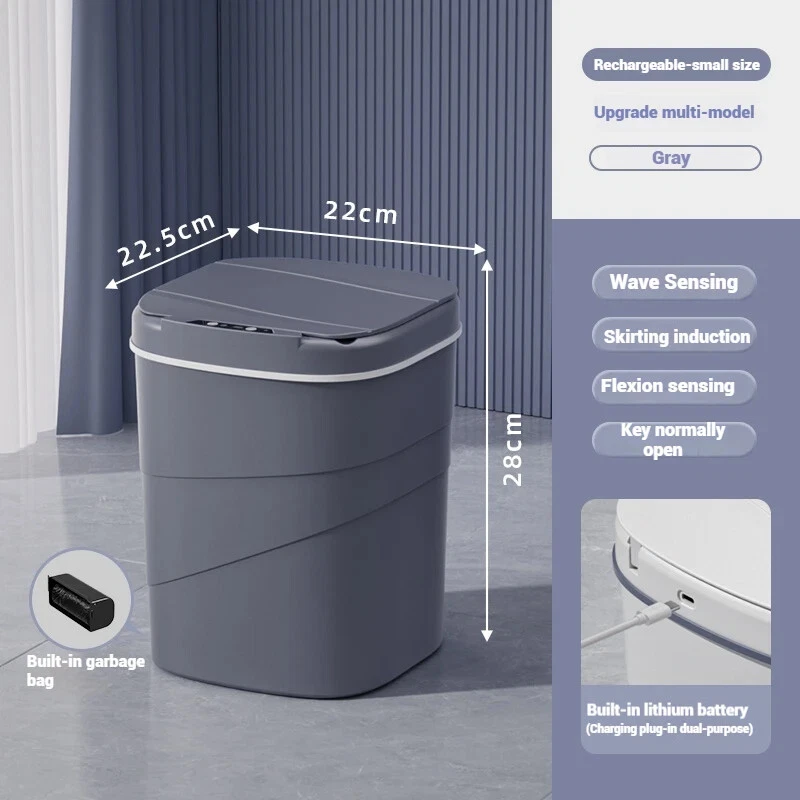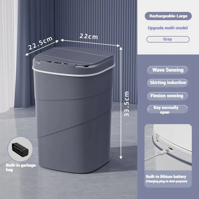 16L Automatic Sensor Trash Can Electric Waste Bin Waterproof Kitchen Wastebasket Induction Bathroom Recycling Trash Bin Product Description: Upgrade your home with the 16L Automatic Sensor Trash Can , designed to combine convenience, hygiene, and modern style. This electric waste bin is perfect for use in kitchens, bathrooms, and offices, providing a hands-free waste disposal solution to keep your space cleaner and more sanitary. Equipped with an advanced infrared sensor , the lid opens automatically when it detects motion and closes gently after a few seconds, preventing direct contact with the bin and minimizing the spread of germs. With its waterproof design , this bin is perfect for humid areas such as bathrooms and kitchens, where durability against moisture is essential. The 16-liter capacity is ideal for both small and medium-sized spaces, offering ample room for daily waste disposal without taking up too much space. The sleek, modern design seamlessly fits into any décor style, adding a touch of elegance to your home or office. Key Features: • Motion Sensor Technology: Hands-free operation with automatic lid opening and closing. • Large 16L Capacity: Holds a substantial amount of waste, suitable for kitchens and bathrooms. • Waterproof Construction: Durable and resistant to splashes, making it ideal for humid areas. • Quiet & Efficient: Soft-closing lid for quiet operation and longer lifespan. • Battery-Powered Convenience: Long-lasting performance with low energy consumption. Say goodbye to traditional waste bins and experience the future of waste disposal with this stylish, functional, and hygienic automatic sensor trash can . Perfect for keeping your environment cleaner with minimal effort!