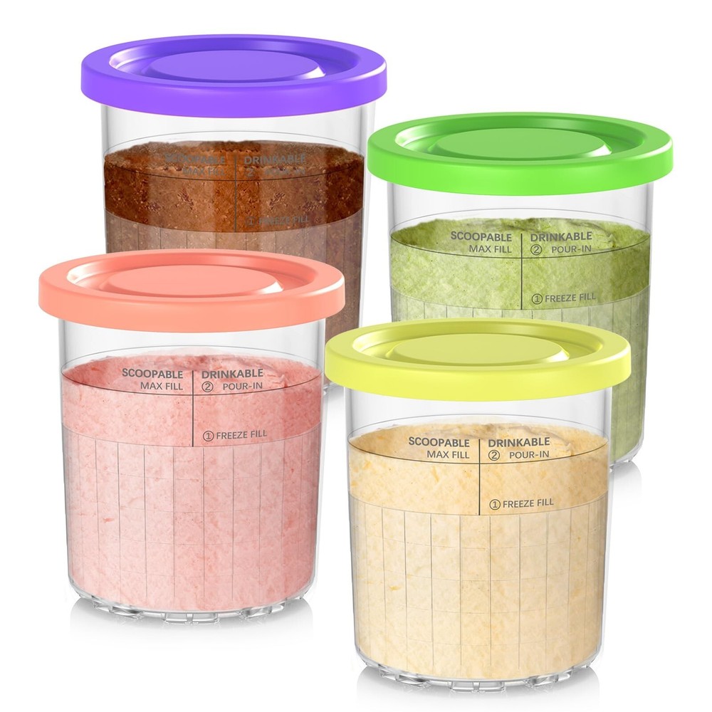 for Ninja Creami Pints and Lids-4 Pack, 16OZ Container Compatible with NC299AMZ & NC300s Series Ice Cream Makers, Extra Cups Replacement for Ninja Creamy Containers Airtight Anti-slip Dishwasher Safe Size: 16OZ Original Pints-4 Pack Brand DENEBORE Color Grey Material Plastic Material Feature Reusable, Food Grade Capacity 16 ounces About this item DENEBORE pints and lids - 4 pack compatiable with Creami Ninja ice cream maker machine : NC300, NC301, CN305A, CN301CO, & NC299AMZ NC290 series. ( NOT NC100/ NC200 Breeze and NC500 Deluxe series ) Airtight sealing and leak-proof lids secure frozen treats fresh, making DENEBORE creami pint containers perfect for storing home made ice cream from -22°F to 302°F (-30°C to 150°C) Made with heavy-duty, food-grade material, ice cream containers are reusable and durable, providing endless happiness for ninja creami lovers Both creami cups and lids are easy to clean and dishwasher safe for hassle-free cleaning, perfect for enjoying the ninja creamy game DENEBORE creami ice cream maker pints with 4 pack Grey lids offer extra options for customizing your own frozen treats. Easy transform to smoothy and yummy treats within few minutes What's included: (4) 16 oz pints, (4) lids , instruction sheet and 100+ flavor E-cookbook. (Item does not ship to Miami&Doral, FL), have any problem please contact us !