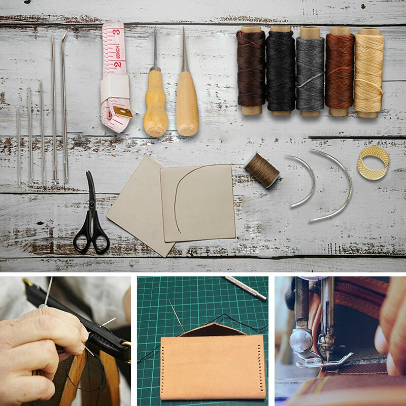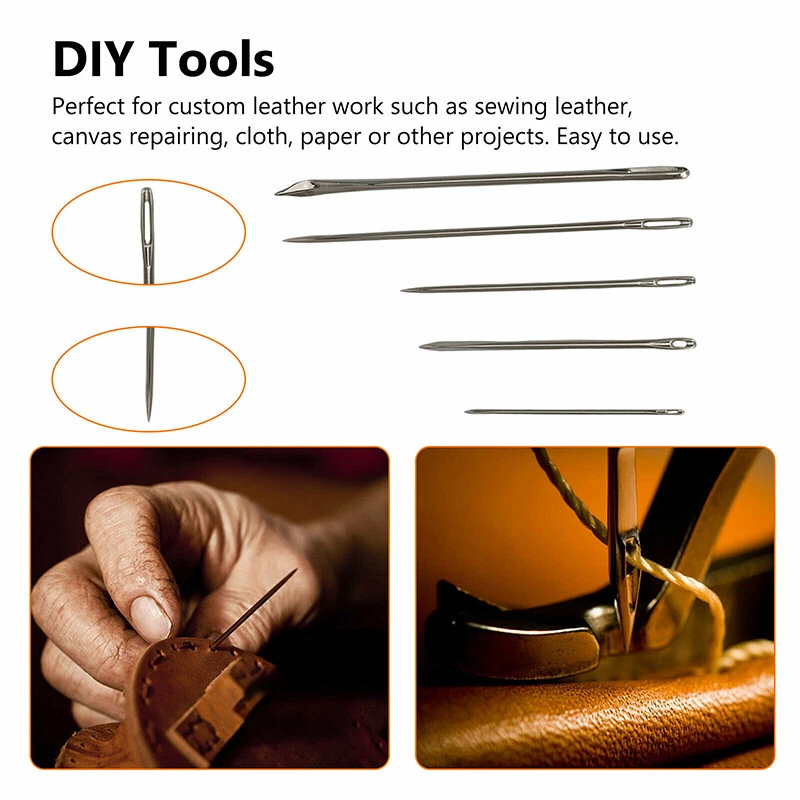 Product Description If you have any questions, please contact customer service first, do not open disputes easily, thank you! Features: 16PCS Hand Stitching Set: This leather tools set includes 7 x Leather Sewing Needles, 1 x Awl, 1 x Leather Sewing Piercing Tool, 5 x Leather Waxed Thread Cord, 1 x Sewing Thimble,1 x Measuring Tape to meet your basic needs for leather crafts. DIY Tools: Perfect for custom leather work such as sewing leather, canvas repairing, cloth, paper or other projects. Easy to use. Leather Sewing Piercing AWL Tool: It's pointed with a hole, can be used to dig holes, very helpful to pick lint and loosen the knot, and can be disconnected, tight line, stripping, crimp, rolling, lines, seals, top cut. Needles & Thimble: Comes with a variety of sizes and shapes needles, including triangle pointed needle, curved needle, etc. Can be used for carpets, canvas, upholstery, coats, tents, mattresses, furs and leather. Suitable for: For parents, family, friends, especially for DIY hand stitching lovers, suitable for beginner and proficient. Specification: Type: Needle Kit Material: Stainless Steel + Wire Color: 5 colors Package Included: 7 x Leather Sewing Needles 1 x Awl 1 x Leather Sewing Piercing Tool 5 x Leather Waxed Thread Cord 1 x Sewing Thimble 1 x Measuring Tape About Us We accept all payments authorized by eBay. powered by