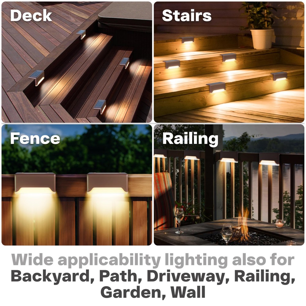 Loving these solar deck lights! They add a cozy, warm glow to my patio without being too bright. Super easy to install—just stick them in, no wiring needed. The waterproof design is solid, surviving storms without a problem. Charges quickly in sunlight and lasts all night. Perfect for creating ambiance, lighting pathways, or sprucing up the deck. Great value for a 16-pack—durable, energy-efficient, and stylish. Highly recommend for effortless outdoor lighting!