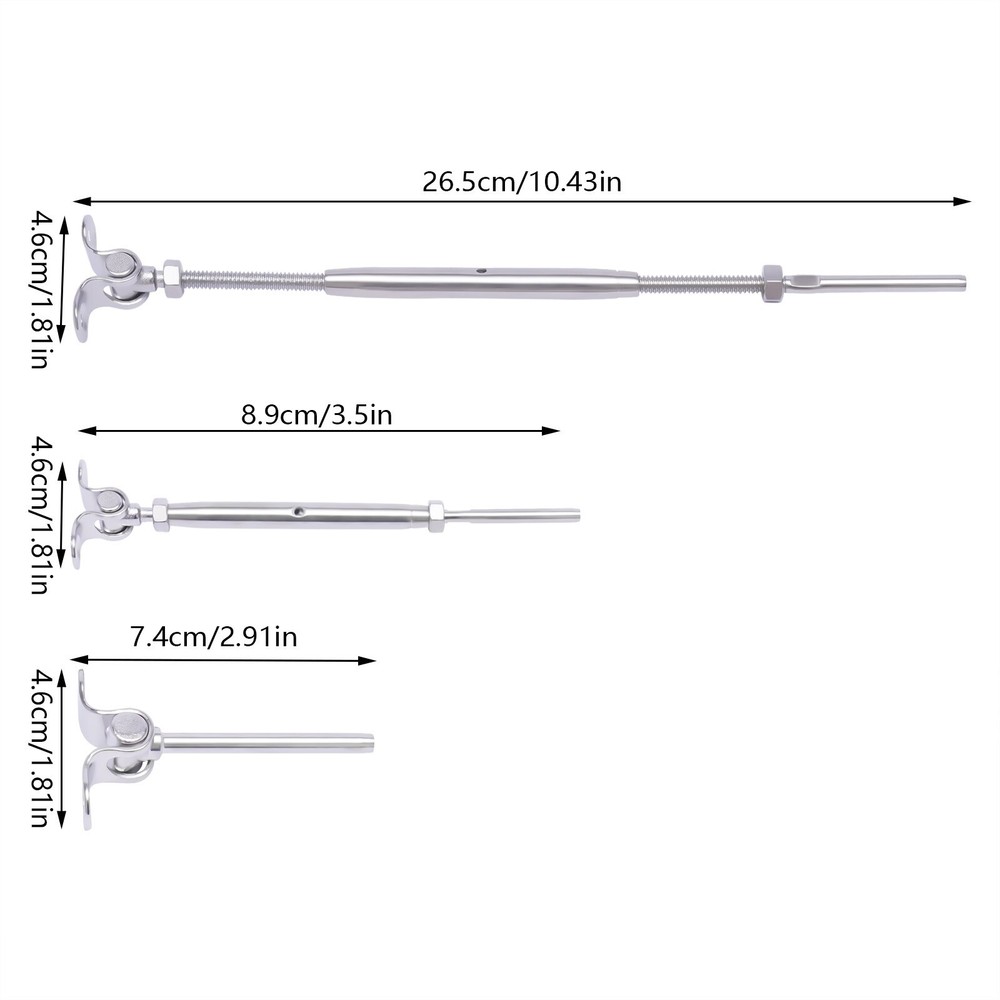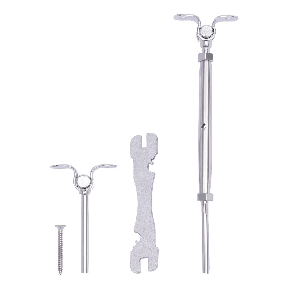 Description The Product Uses 316 Stainless Steel As Raw Material, Which Has Excellent Corrosion Resistance and Can Effectively Prolong Its Service Life. the Function of 180 Multi-angle Adjustment and Free Expansion and Contraction Makes It More Adaptable. and It Can Be Directly Installed by Screws, Which Is Easy to Use. It Will Be Your Powerful Railing Connector. Key Features High-quality Material: It Is Made of 316 Stainless Steel with Excellent Rust Prevention and Corrosion Resistance . It Is Very Suitable for Indoor and Outdoor Applications and Even Coastal Areas. Sufficient Quantity: the 16 Pairs of Cable Railing Kits Contained in the Package Can Provide More Options for Your Cable Installation, and You Can Replace the Damaged Accessories in Time. Multi-angle Adjustment: the Turnbuckle Can Rotate Between 0-180 Degrees, Which Is the Ideal Choice for Horizontal and Any Angle Railings. You Don't Have to Worry About the Angle of the Stairs. Easy to Install: the Cable Railing Kit Does Not Need Any Pre-drilling and Can Be Easily Installed by Tightening the Screws. Complete Accessories: the Cable Railing Kits Are Equipped with 16 Turnbuckles, 16 Terminals, 1 Multi-functional Wrench and a Large Number of Screws. You Can Install Them Directly Without Purchasing Additional Accessories. Adjustable Length: the Length of the Product Is Adjustable(3.5-10.43in), Which Can Better Match the Distance Between the End Posts. Easy to Clean: the Smooth Surface of the Product Is Easy to Clean. You Only Need to Wipe It Gently with a Rag to Clean It. Good Customer Service: Communication Is the Best Way to Solve Problems. If You Encounter Any Problem After Purchase, Please Contact Us in Time Before Opening or Unpacking the Box. We Will Do Our Best to Solve the Problem for You. Details Double-hole Design: the Double-hole Turnbuckle Base Can Be Fixed with Two Screws at the Same Time, Which Can Make It More Firmly Fixed on the Handrail. Round Edges: the Edges of the Product Have Been Polished Smoothly, Which Can Further Protect You from Accidental Scratches. Application The Cable Railing Kit Is Suitable for Outdoor and Indoor Cable Railing Systems, Such As Stairs and Staircase Cable Railing, Deck Railing and Garden Fence, Horizontal, Vertical and Straight Cable Guardrail. Specification Material: 316 Stainless Steel Color: Silver Process: Polishing Assembly Required: Yes Item Form: Rod Applicable Cable Size: 0.32cm/ 1/8 in Adjustable Angle: 0-180 ° Gross Weight: 1.95kg/ 4.3 Lbs Net Weight: 1.7kg/ 3.75 Lbs Plane Holding Puller: 7.4 * 4.6cm/2.91 * 1.81in Plane Holding Basket Bolt: 8.9 * 4.6cm/3.5 * 1.81in Plane Holding Basket Bolt (After Stretching): 26.5 * 4.6cm/10.43 * 1.81in Package Size: 25*15*10cm/ 9.84*5.91*3.94in Package Included 16* Turnbuckles 16* Terminals 1 * Multi-function Wrench All Accessories for Installation Notes The Maximum Span Between the Two End Posts Is 30 Feet. in Order to Comply with the Specification, It Is Recommended That the Spacing Between Posts Is 3-4 Feet and the Spacing Between Cables Is 3 Inches. Please Allow the Slight Color Difference Caused by the Shooting Light and the 1-3 Cm Error Due to Manual Measurement, and Make Sure You Do Not Mind Before Ordering. Payment Delivery details Terms of sales About us Contact us Payment We accept ebay payment 。 Fees such as import duties, taxes are not included in the item price or shipping costs. These charges are the buyer's responsibility. Delivery details Shipping: 2-9 working days to: USA Terms of sales We maintain high standards of excellence and strive for hundred percent customer satisfaction. Feedback is very important to us. We hope that you contact us immediately before you give neutral or negative feedback, so that we can address your concerns. It is impossible to address issues if we do not know about them! About us Your satis faction is our ultimate goal. We work hard to earn your trust and future business. Our certified technicians have tested each item before shipping. The unit comes with 1 year limited warranty on all manufacturing defects. a) If you receive a defective item, you may return it or ask for a discount. Please contact us within 14 days after you receive the package. b) What you returned must be intact and in its original packaging as re? u. Customer is responsible for shipping costs of the returned item. c) We will cover the cost of shipping back t with the shipping rate indicated in the registration page. We will send you a new unit or refund the full payment you paid. Thank you. Contact us Business Hour Business Hour: Monday To Friday: 8:30 AM to 5:00 PM (Beijing China time) Due to time zones, our reply to your questions may not be immediately. But within above working time, we will reply your email within 24 hours. If it's non-workdays, please kindly be patient and wait till Monday. Please contact us with ebay message. Please feel free to contact us if you have any questions. Monday To Friday: 8:30 AM to 5:00 PM (Beijing China time) Due to time zones, our reply to your questions may not be immediately. But within above working time, we will reply your email within 24 hours. If it's non-workdays, please kindly be patient and wait till Monday. Please contact us with ebay message. Please feel free to contact us if you have any questions.
