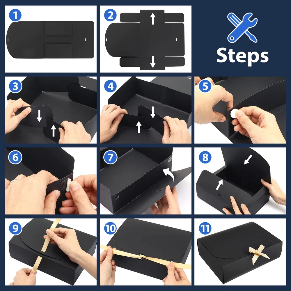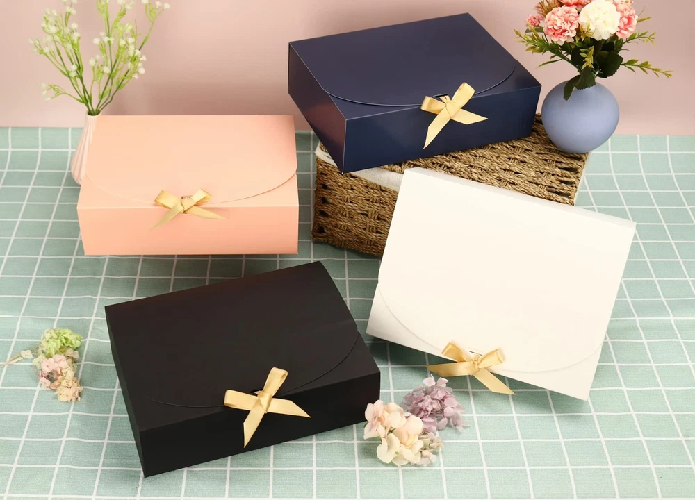 These gift boxes are absolutely perfect for any occasion! The blue kraft paper is sturdy and elegant, especially with the gold ribbon accents. The included adhesive dots keep the lids secure—no more loose tops! At 10.6x7.8x3.1 inches, they’re spacious enough for wedding favors, bridesmaid gifts, or holiday presents. The set comes with 16 boxes and 70 adhesive dots, making wrapping effortless. Great for birthdays, baby showers, or graduations—versatile and beautifully designed. Highly recommend for anyone who loves stylish, hassle-free packaging!