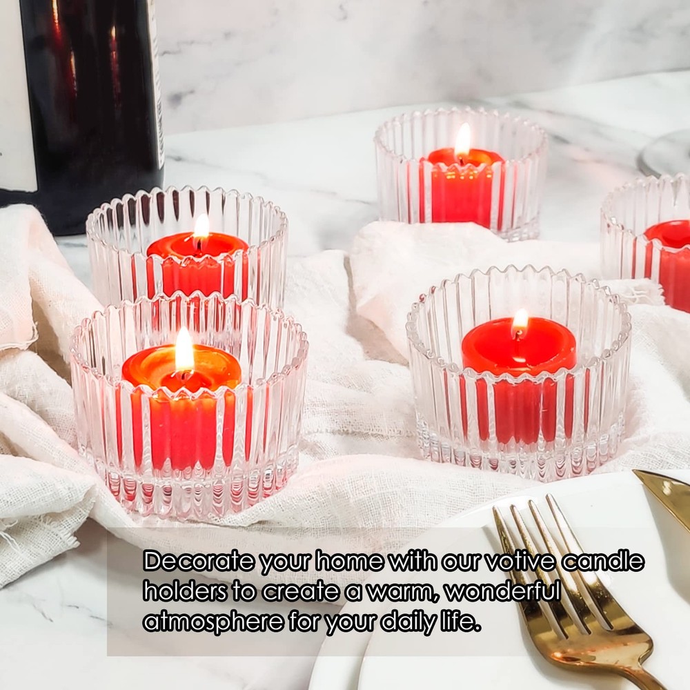 These votive candle holders are perfect for adding a cozy glow to any space! The clear glass is elegant and versatile, working with tealights, regular candles, or DIY projects. I love that they come with lids—great for storage or keeping dust out. The size is just right, and the transparency makes the candlelight shine beautifully. A fantastic set for decorating, gifting, or crafting!