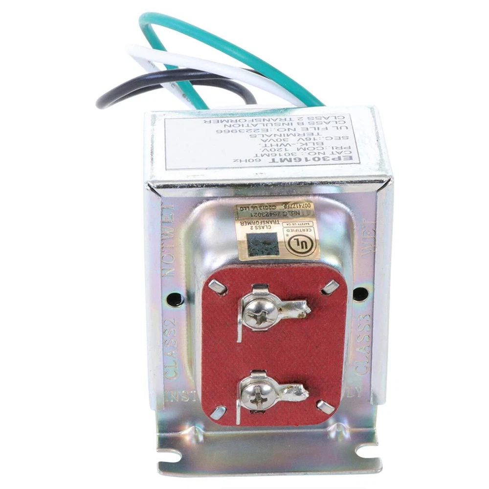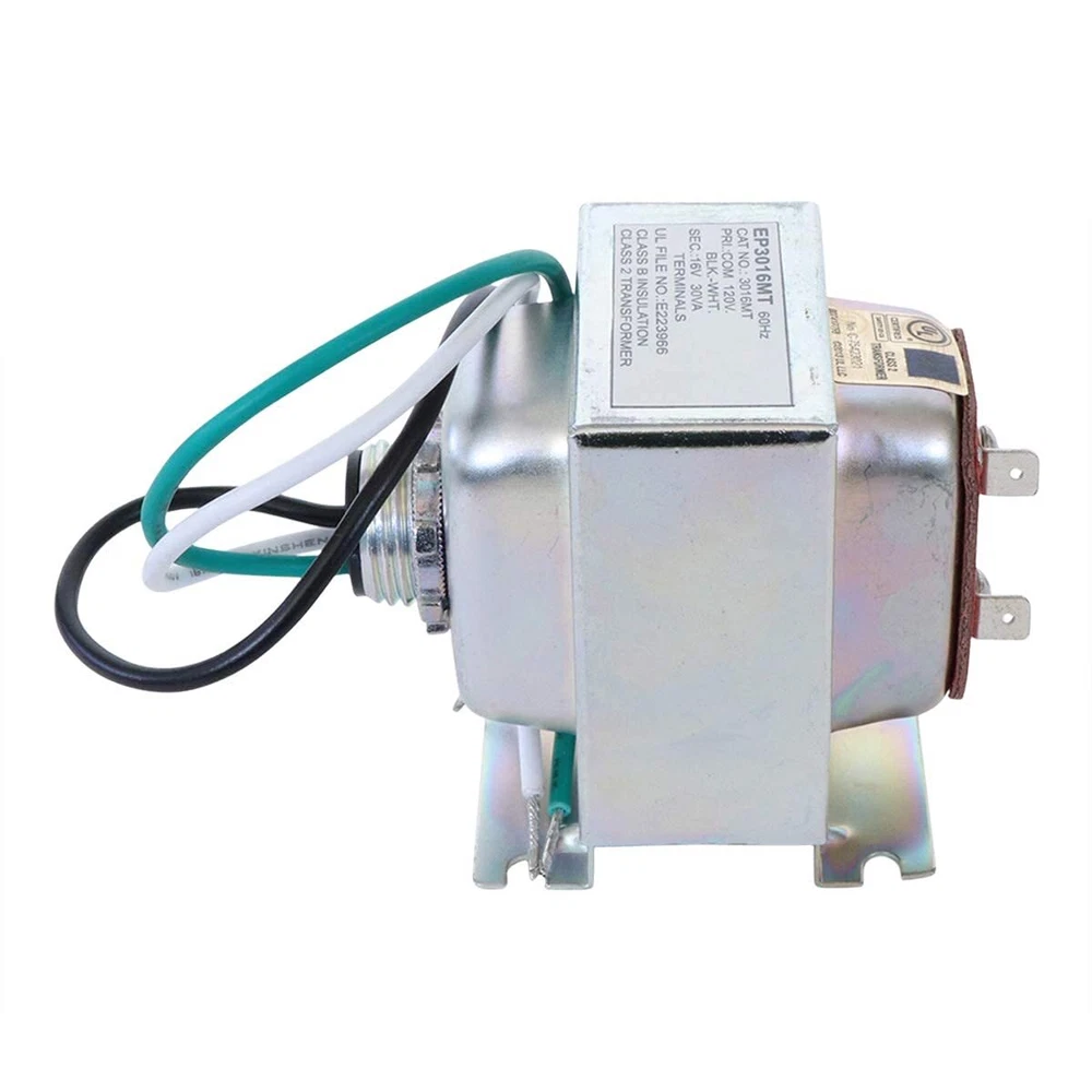 This is a 16V 30VA Doorbell Transformer Compatible with Ring Video Doorbell Pro Hardwired Door Chime, Nest Hello Video Doorbell.Replace old or under powered transformers. Specification: Primary Input: 120V AC 60Hz Secondary Output: 16V AC 30 VA Class B Insulation Class 2 transformer Manufacturers’ part numbers are solely for identification. All materials supplied by us are our replacements for manufacturers’ parts. All product and company names are trademarks™ or registered® trademarks of their respective holders. Use of them does not imply any affiliation with or endorsement by them. [Product specifications]: 16V 30VA doorbell transformer: low voltage hardwired door chime transformer, Primary Input: 120V AC 60Hz, Secondary Output: 16V AC 30 VA, Class B insulation, Class 2 transformer [Compatible with]: For use with many doorbell transformers, Ring Doorbell, Ring Doorbell 2, Ring Video Doorbell Pro, Nest Hello Video Doorbell [Easy to install]: screw down and thread clamps to electrical box. [Useage]: Power single or multiple door chimes in one home with ease, replace your old and under powered doorbell [Risk free shopping]: Superior Quality you can trust! This SupplyEdge product is UL/CSA approved to assure safe operation and long life. This item by SupplyEdge come with a 1 year, no questions asked, no hassle warr anty.