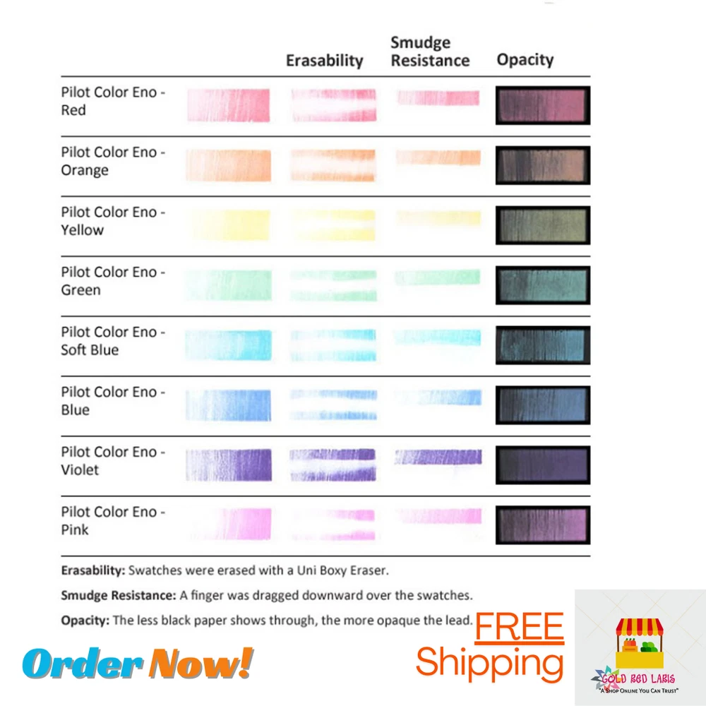 ♛Welcome to 💝GOLD RED LARIS STORE♛ 💝Your satisfaction is our pursuit💝 ✈️ All Goods in stock ,high quality,whole sale price. ✈️ Delivery faster(1-3 Days),quick response,best service. ✈️ Our store will continue to have new items, please continue to pay attention. ❖♒♒♒♒♒♒♒♒♒♒♒♒♒♒♒❖ Happy Shopping⚡🚀 💥Shop Advantage💥 ✅Lowest Price and Best Offer provided. ✅Guarantee Product Quality. ✅Great & Fast Service Provided. Product Description - Each mechanical pencil free with two pieces of colored lead (inside the pencil). - Using a mechanical pencil doesn't have to mean limiting yourself to plain gray lead! - The Pilot Color Eno mechanical pencil is available in eight bright colors, each with matching colored lead. - Available in 8 colours: Blue, Green, Orange, Pink, Red, Soft Blue/Turquoise, Violet, and Yellow. - The colored leads are smudge-resistant and easy to erase—perfect for drawing , shading and sketching! - Matching refill leads can be found under Recommended Refills/Parts, and the pencil can also be used with any other 0.7 mm leads. The Pilot Color Eno mechanical pencil is available in eight bright colors, each with matching colored lead. The colored leads are smudge-resistant and easy to erase—perfect for drawing and sketching. Each pencil comes with two pieces of colored lead. Matching refill leads are available in store as well, and the pencil can also be used with any other 0.7 mm leads. How to Order 1.Contact us 2.Choose 16 the pencil based on the pictures show, you can choose any colour, have 8 colour design(at the pictures) 3For Example 1 = Red ,Quantity: ? 2 = Blue ,Quantity: ? 3 = Pink ,Quantity: ? 4 = Green ,Quantity: ? 5 = Violet ,Quantity: ? 6 = Orange ,Quantity: ? 7 =Yellow ,Quantity: ? 8 = Soft Blue/Turquoise ,Quantity: ? (YOU CAN COPY AND USE THIS TEMPLATE) ✈️ SHIPPING AND HANDLING ✈️ Product will be sent out within 1-3 working days. The order will be shipped with proper packing to ensure receive in good condition. 💝 PAYMENTAND ADRESS 💝 Please make sure the information provided (eg: name/address contact number and email are correct and verified. We do not responsible on invalid address provided 💝 CONTACTUS 💝 If there is any problem with order, kindly contact us vis eBay messenger. Support will be provided as soon as possible. We would like to appreciate your feedback before posting a neutral or negative feedback. Thank You For Your Support ! Do Rate Us At Above ! We Serve You Better ! Thank You ^_^ THE TOTAL PRICES INCLUDED SHIPPING COST -----------THANK YOU FOR VISITINGUS-----------------