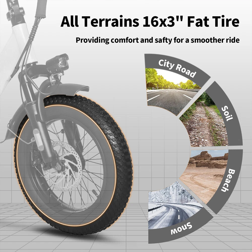 16 Inch Fat Tire Folding Electric Commuter Bike for Adults 36V