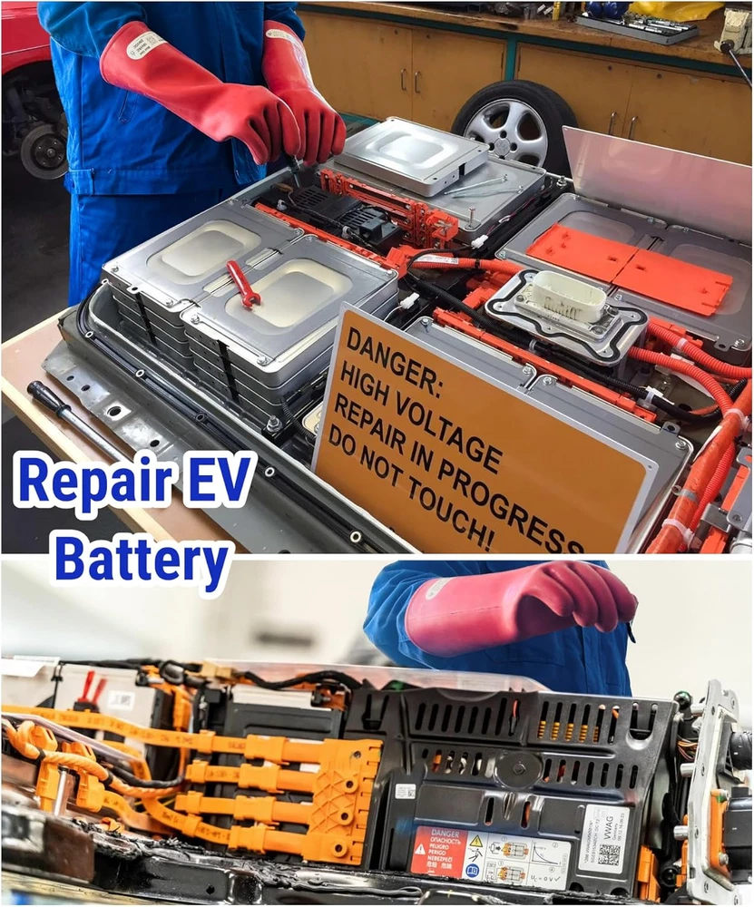 Product Description Flexible, thick, Not for dexterous work. Leather protectors which not included in our gloves recommended to be worn over rubber gloves for protection. Gloves Used for Lichtenberg Wood Burn Output 15kVAC 40mA Designed and manufactured according to China national standard GB/T 17622-2008. Each pair of gloves, whether used or in storage should be visually inspected and/or electrically tested. China national standard recommends a periodic inspection, electric retesting or periodic replacement. No gloves should be used unless they have been tested within a maximum period of 12 months when in storage and 6 months when in use. Testing includes air inflation to check for air leaks, a visual inspection while pressurized, and then a dielectric test in accordance with GB/T 17622-2008. If the glove is thought to be unsafe, the pair shall not be used, then electrical test or destroyed. Avoid contact with any substance that could affect the glove integrity. Gloves that are soiled in use should be washed with soap and water. Gloves that become wet from washing should be dried thoroughly at a temperature not above 65 °C. Do not compress or fold the gloves. Keep away from direct heat, radiators or other sources of artificial heat, direct sunlight, artificial light or other sources of ozone. Store in temperatures between 10°C and 35°C. This product contains natural rubber latex which may cause allergic reactions. Insulating gloves are recommended to be used in conjunction with leather protector gloves to provide mechanical protection on its natural shape. What are in the package: 1 Pair(1 right + 1 left) rubber electrical insulated gloves and 1 English and Spain Manual.(Leather protectors are not included in our gloves.) Colour: Red, Materials: Rubber, Thickness: 1.8mm Product Weight: 16.1oz Package Weight: 17oz Individual Glove Size: XLarge, 15x6.7x2.4 inch Package Size: 15.1x6.8x2.5 inch Max Use Voltage: 16kVAC/26kVDC Instructions Version: English and Spain First Tested Date: Same as Mfd. date on the instructions. Mfg. Standards: China National Standard GB/T 17622-2008 Used for Bare Hands Size: 10 inch hand circumference (just below the knuckles, not including thumb.)