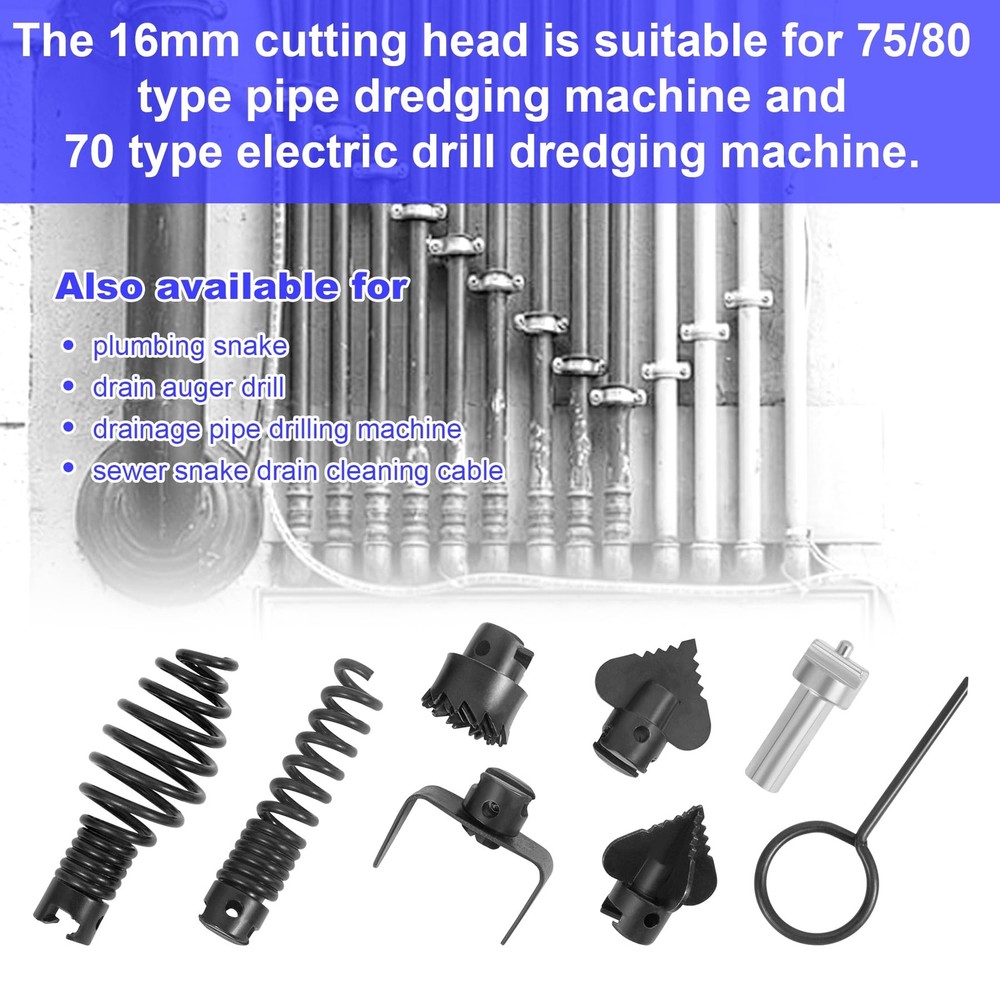 16mm Drain Cleaner Cutter Head Set for Auger Drill Attachment