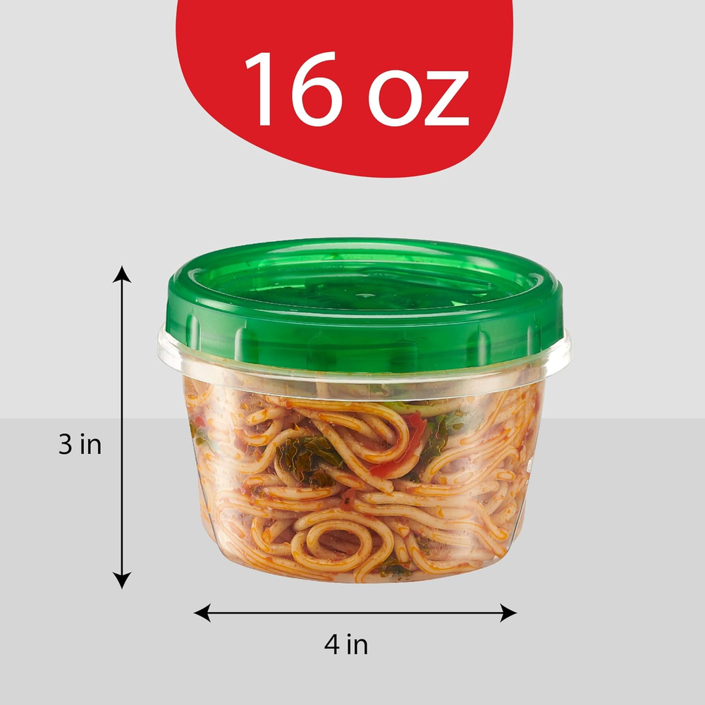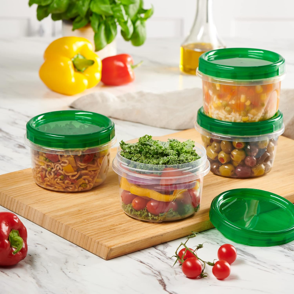 16oz Reusable Twist Cap Food Storage Containers 6-Pack with Green Lids
