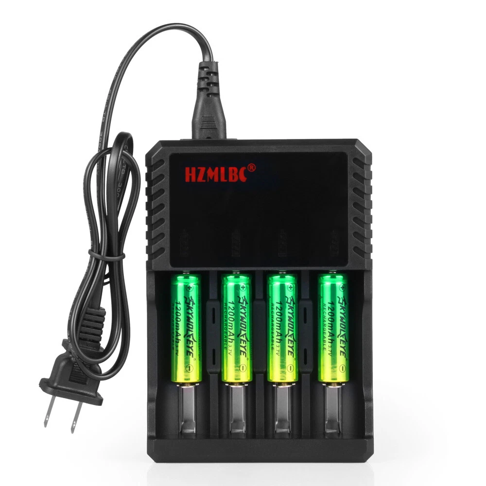 Introductions: Do you want the economical and greener lifestyles. Maybe you should start from minor matter, and just like use the rechargeable batteries. Rechargeable batteries adopt universal standards, most of them suitable for cameras, toys and many other electronic devices. Except that, it features extensively long working life and high efficiency, great for use. And it is compact and rechargeable, so you can carry it anywhere anytime, convenient to use. The number of charge cycles is about 1000 times, durable and reliable! Features: 1. New battery 2. High quality and durable 3. Provides excellent continuous power sources to your device 4. High energy density, long life battery 5. This battery has an extra long life for all your battery powered devices 6. Fit for camera, MP3/MP4 Player, electronic toys and other electronic devices Specifications: 1. Battery Type: 14500 Rechargeable Lithium battery 2. Rechargeable Time: about 3 hours 3. Battery capacity: 1200mAH 4. Battery voltage: 3.7V 5. Battery color: Green 6. Brand:SkyWolfEye 7. each Weight: 17 g / 0.6 oz 8. Per Dimensions: 5x1.4 cm / 1.97x0.55 inch (H x Dia.) 828M Four-slot lithium battery charger Description: * LED indicator shows current charging status. * Connect power indicator light: Red light * Charging indicator light: Red light * Full charge indicator light: Green light * Plug type: US plug * Suitable for: 186'50 16340 14500 26650 Lithium rechargeable battery * Automatically stops when charging is complete. * Can charge four batteries at the same time. * Color: Black Package Included: 16pcs 14500 battery 1pc 4 Slot Charger