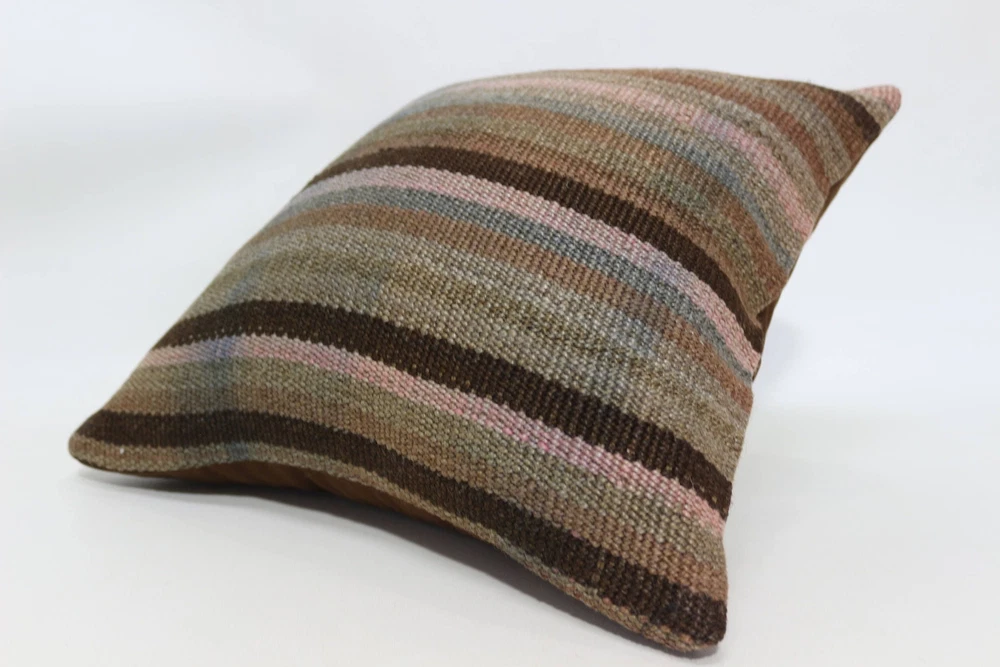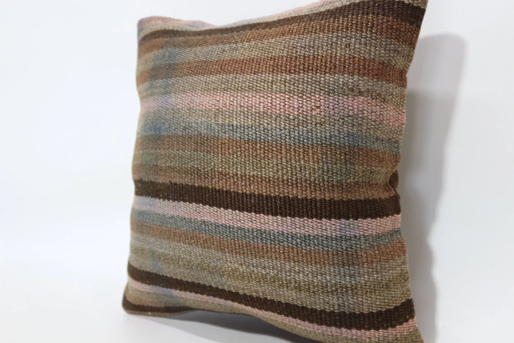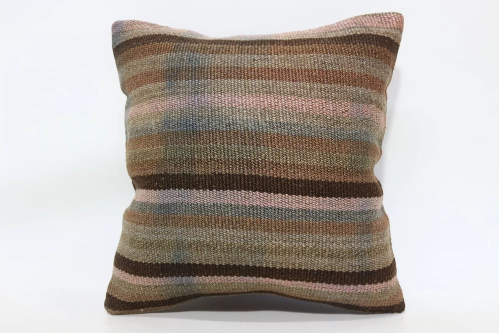16"x16" Brown Pillow, Throw Pillow, Pillow for Sofa, Turkish Kilim Pillow