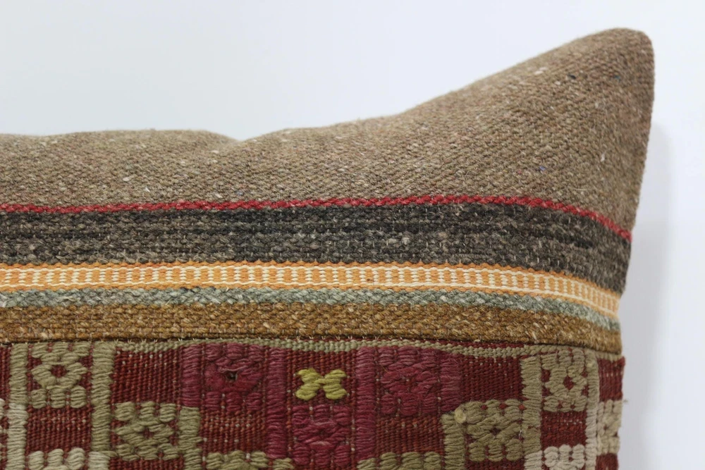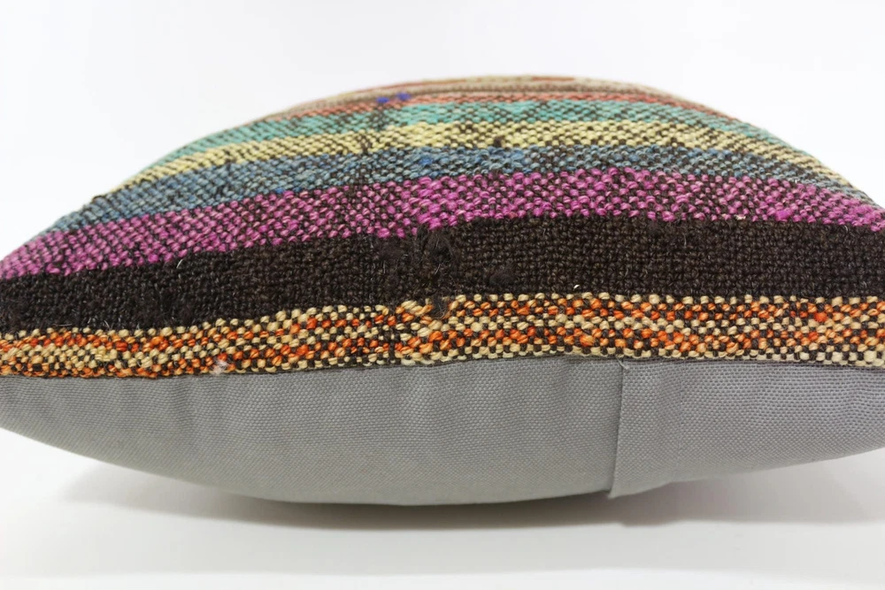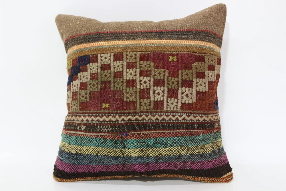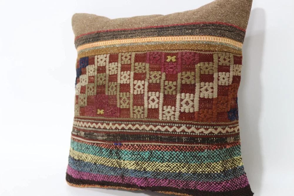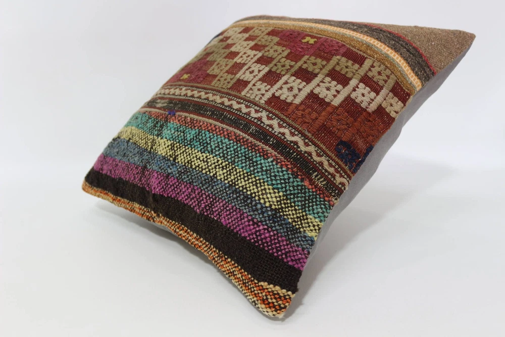 Kilim Pillow Details: All of my beautiful pillow covers or cushion cases are designed and made by me. I am making my throw pillow covers from handmade vintage rugs, Turkish rugs. Therefore, each of my vintage kilim pillowcase is one of kind. These cushions covers are piece of an art. The size of this pillow is 16 x 16 inches or 40 x 40 cm. The front side of this decorative pillow cover, cushion cover is wool on wool vintage kilim rug. The backside of this throw is high quality cotton fabric with a high quality zipper. This listing has 2 option for this handmade pillow. You can choose with insert or without insert. The listing photos is with insert in the pillowcase which is just for demonstration purpose. All of my vintage Turkish rugs have been professionally washed before I cut them as pillow case or cushion case so these kilim covers are 100 posent clean and ready to use. Due to the age and handmade nature of these vintage rugs, there might be imperfections and flaws that are not considered defects. This is a piece of a handmade vintage rug with minor signs of wear consistent with age and use that give it an antique look. You can see the condition of the rug pillow clearly in the detailed photos. I am going to ship your order of decorative pillow as soon as possible. I usually ship in the next day with DHL Express or FedEx which will deliver the kilim pillow, cushion cover just in 3-5 business days. It is my responsible until you receive pillow cover or pillow cover with insert at your door. If the pillow cover or insert get lost or damage during the shipping, I will ship the new kilim pillow cover or pillow insert for free as soon as possible. I take photos of my throw pillows indoor with professional camera which shows the real colors. The photos of these Turkish pillow covers are not altered. Keep in mind the colors of the rug vary slightly in different lights. Please contact to me for additional photos. I take the photos of my vintage rugs outside with daylight to show you the real and natural colors. My photos are not altered. Keep in mind the colors of the rug vary slightly in different lights. Please contact to me for additional photos. SATISFACTION GUARANTEED for your order in my shop. Your SATISFACTION is the most important to me. Please write me if you have any question or if you don't like anything from my pillow covers, cushion covers. If any reason, you are not happy from your Turkish pillow cover, I accept return without any hassle. Please read my shop policies for details. This cushion case or pillow cover can be used as decorative throw pillow, gift pillow, Christmas pillow case, bedding pillow, lumbar pillow, sofa pillow, bohemian pillow, boho pillow. You can find in any kind of Turkish kilim pillow cover in different design such as striped pillow, embroidered pillow, and geometric pillow.