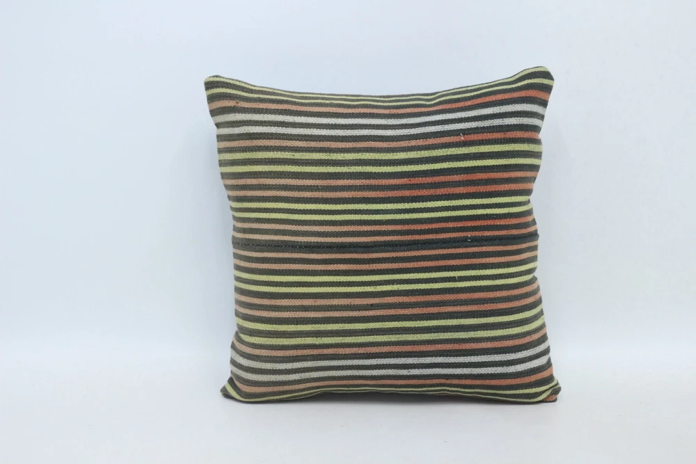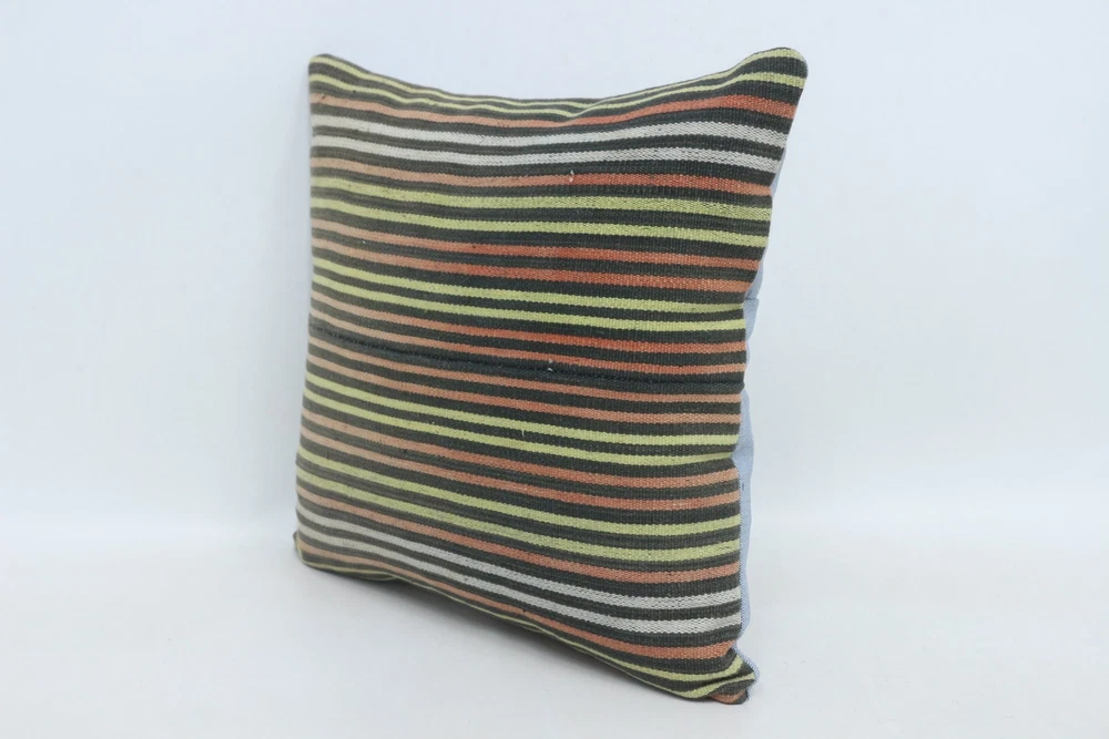 Kilim Pillow Details: All of my beautiful pillow covers or cushion cases are designed and made by me. I am making my throw pillow covers from handmade vintage rugs, Turkish rugs. Therefore, each of my vintage kilim pillowcase is one of kind. These cushions covers are piece of an art. The size of this pillow is 16 x 16 inches or 40 x 40 cm. The front side of this decorative pillow cover, cushion cover is wool on wool vintage kilim rug. The backside of this throw is high quality cotton fabric with a high quality zipper. This listing has 2 option for this handmade pillow. You can choose with insert or without insert. The listing photos is with insert in the pillowcase which is just for demonstration purpose. All of my vintage Turkish rugs have been professionally washed before I cut them as pillow case or cushion case so these kilim covers are 100 posent clean and ready to use. Due to the age and handmade nature of these vintage rugs, there might be imperfections and flaws that are not considered defects. This is a piece of a handmade vintage rug with minor signs of wear consistent with age and use that give it an antique look. You can see the condition of the rug pillow clearly in the detailed photos. I am going to ship your order of decorative pillow as soon as possible. I usually ship in the next day with DHL Express or FedEx which will deliver the kilim pillow, cushion cover just in 3-5 business days. It is my responsible until you receive pillow cover or pillow cover with insert at your door. If the pillow cover or insert get lost or damage during the shipping, I will ship the new kilim pillow cover or pillow insert for free as soon as possible. I take photos of my throw pillows indoor with professional camera which shows the real colors. The photos of these Turkish pillow covers are not altered. Keep in mind the colors of the rug vary slightly in different lights. Please contact to me for additional photos. I take the photos of my vintage rugs outside with daylight to show you the real and natural colors. My photos are not altered. Keep in mind the colors of the rug vary slightly in different lights. Please contact to me for additional photos. SATISFACTION GUARANTEED for your order in my shop. Your SATISFACTION is the most important to me. Please write me if you have any question or if you don't like anything from my pillow covers, cushion covers. If any reason, you are not happy from your Turkish pillow cover, I accept return without any hassle. Please read my shop policies for details. This cushion case or pillow cover can be used as decorative throw pillow, gift pillow, Christmas pillow case, bedding pillow, lumbar pillow, sofa pillow, bohemian pillow, boho pillow. You can find in any kind of Turkish kilim pillow cover in different design such as striped pillow, embroidered pillow, and geometric pillow.