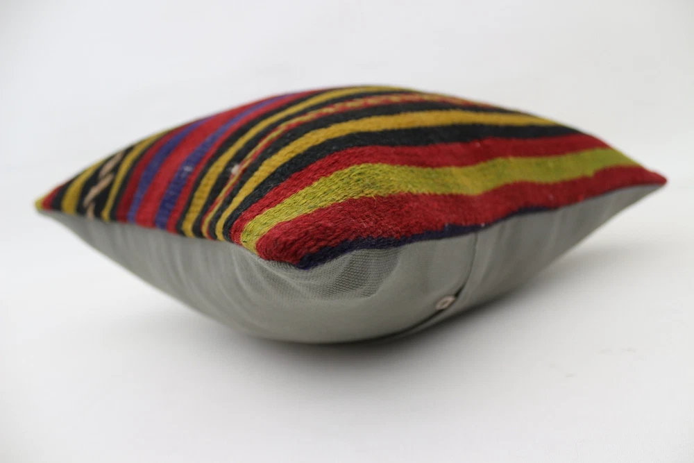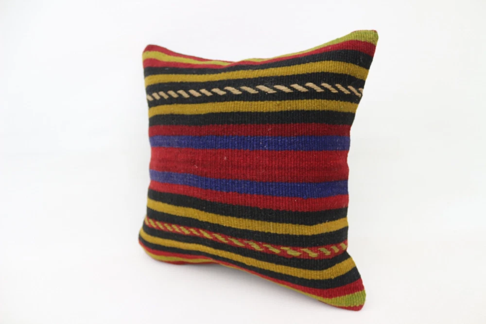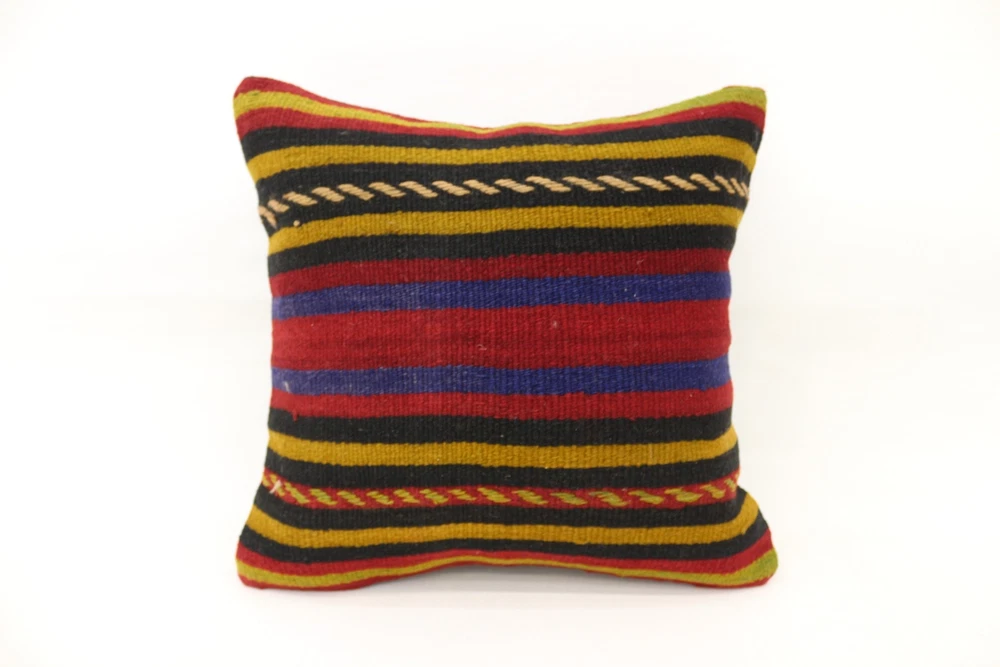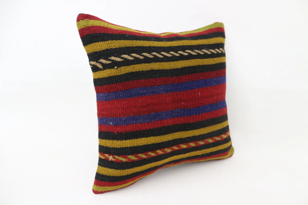 Kilim Pillow Details: All of my beautiful pillow covers or cushion cases are designed and made by me. I am making my throw pillow covers from handmade vintage rugs, Turkish rugs. Therefore, each of my vintage kilim pillowcase is one of kind. These cushions covers are piece of an art. The size of this pillow is 16 x 16 inches or 40 x 40 cm. The front side of this decorative pillow cover, cushion cover is wool on wool vintage kilim rug. The backside of this throw is high quality cotton fabric with a high quality zipper. This listing has 2 option for this handmade pillow. You can choose with insert or without insert. The listing photos is with insert in the pillowcase which is just for demonstration purpose. All of my vintage Turkish rugs have been professionally washed before I cut them as pillow case or cushion case so these kilim covers are 100 posent clean and ready to use. Due to the age and handmade nature of these vintage rugs, there might be imperfections and flaws that are not considered defects. This is a piece of a handmade vintage rug with minor signs of wear consistent with age and use that give it an antique look. You can see the condition of the rug pillow clearly in the detailed photos. I am going to ship your order of decorative pillow as soon as possible. I usually ship in the next day with DHL Express or FedEx which will deliver the kilim pillow, cushion cover just in 3-5 business days. It is my responsible until you receive pillow cover or pillow cover with insert at your door. If the pillow cover or insert get lost or damage during the shipping, I will ship the new kilim pillow cover or pillow insert for free as soon as possible. I take photos of my throw pillows indoor with professional camera which shows the real colors. The photos of these Turkish pillow covers are not altered. Keep in mind the colors of the rug vary slightly in different lights. Please contact to me for additional photos. I take the photos of my vintage rugs outside with daylight to show you the real and natural colors. My photos are not altered. Keep in mind the colors of the rug vary slightly in different lights. Please contact to me for additional photos. SATISFACTION GUARANTEED for your order in my shop. Your SATISFACTION is the most important to me. Please write me if you have any question or if you don't like anything from my pillow covers, cushion covers. If any reason, you are not happy from your Turkish pillow cover, I accept return without any hassle. Please read my shop policies for details. This cushion case or pillow cover can be used as decorative throw pillow, gift pillow, Christmas pillow case, bedding pillow, lumbar pillow, sofa pillow, bohemian pillow, boho pillow. You can find in any kind of Turkish kilim pillow cover in different design such as striped pillow, embroidered pillow, and geometric pillow.