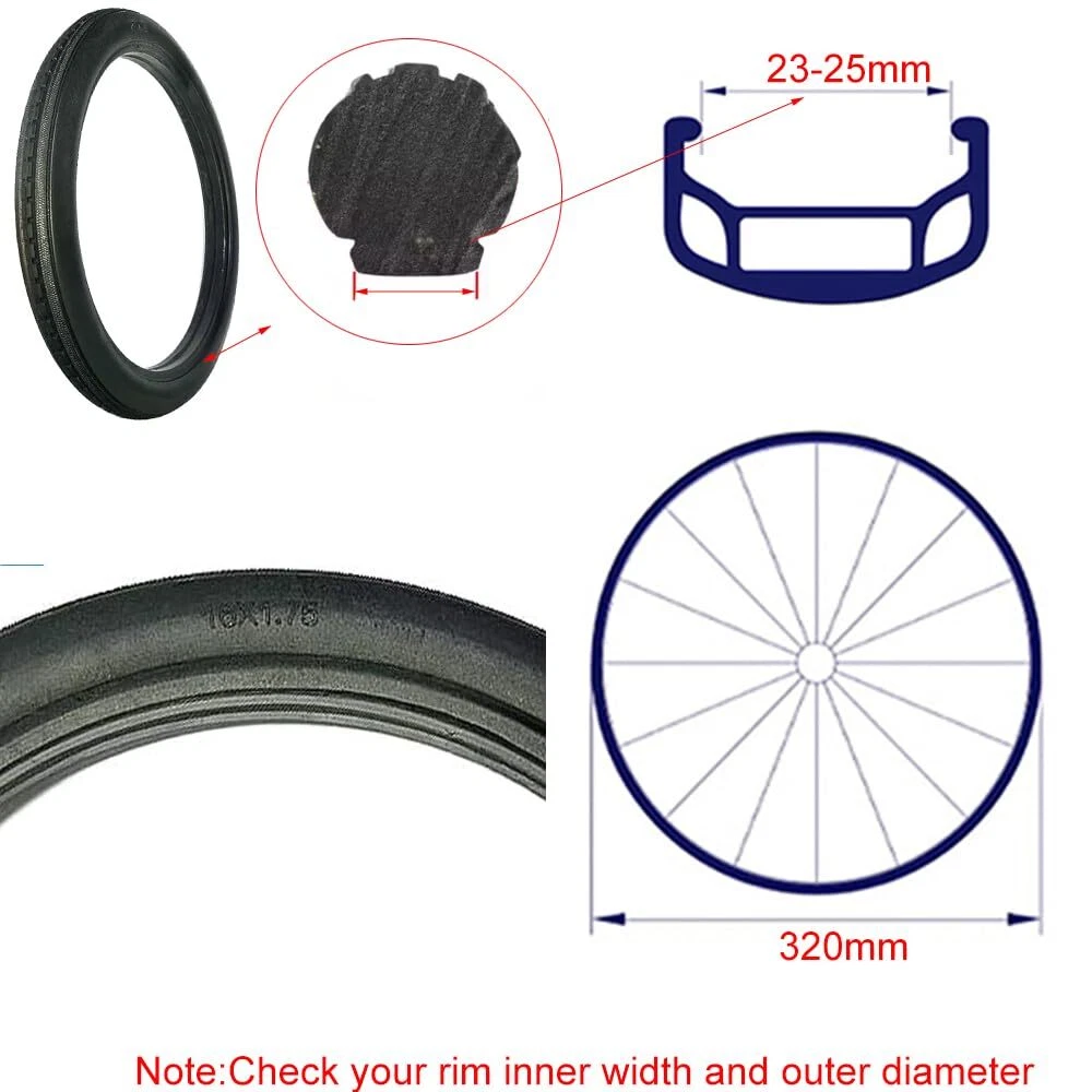 16 Inch 16x1.75 Bicycle Solid Tires BMX Bike Tire 16x1.75 Rubber Black Tires Cycling Tyre Safety and Environmental Protection:Made of pure rubber material, non-toxic and tasteless, healthy and environmentally friendly. Inflatable-free/not afraid of tying:Replace the traditional inner and outer tire, high density, high strength, nail can not be inserted. Shockproof/good cushioning:High elastic rubber material, solid tire, makes the tire stress more average and effectively absorbs the shock feeling. Wear-resistant/long life:Use saturated materials, ozone proof, acid rain and ultraviolet rays. Can withstand all kinds of bumps and shocks on the road. Fit Rim Groove Width:25mm,Rim Diameter 320mm, suit for 16inch BMX Bicycle Safety and Environmental Protection:Made of pure rubber material, non-toxic and tasteless, healthy and environmentally friendly. Inflatable-free/not afraid of tying:Replace the traditional inner and outer tire, high density, high strength, nail can not be inserted. Shockproof/good cushioning:High elastic rubber material, solid tire, makes the tire stress more average and effectively absorbs the shock feeling. Wear-resistant/long life:Use saturated materials, ozone proof, acid rain and ultraviolet rays. Can withstand all kinds of bumps and shocks on the road. Rim Groove Width:25mm,Rim Diameter 320mm ,suit for 16inch BMX Bicycle Note:Before you place a order,please confirm your inner rim width. Weight:About 700g/pcs Package Included: 1 pcs Solid Tire Shipping We offer FREE shipping on all orders! We ship within Three business days of payment, usually sooner. We use a selection of shipping services such as UPS, FedEx, USPS etc. We only ship to the lower 48 states, no APO/FPO addresses or PO Boxes allowed. Local pickups and combined shipping options are not provided at this time. Return You can return a product for up to 30 days from the date you purchased it. Any product you return must be in the same condition you received it and in the original packaging. Please keep the receipt. Payment We accept payment by any of the following methods: PayPal Please pay as soon as possible after winning an auction, as that will allow us to post your item to you sooner! Feedback Customer satisfaction is very important to us. If you have any problem with your order, please contact us and we will do our best to make you satisfied. Contact Us If you have any queries, please contact us via ebay. We usually respond within 24 hours on weekdays. Please visit our eBay store to check out other items for sale! Thank you for shopping at our store.