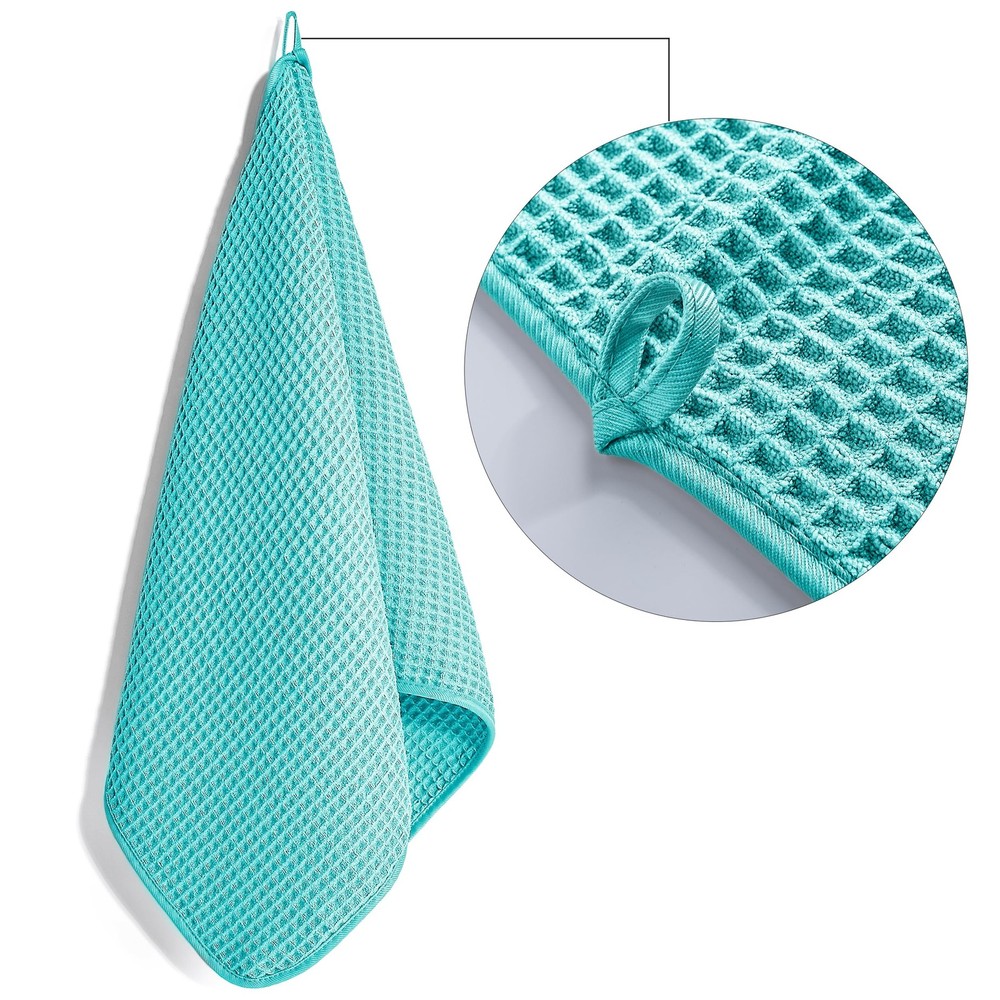 Absolutely love these waffle weave towels! They’re incredibly soft and absorbent, drying hands and faces in no time while staying lightweight. The quick-dry feature keeps them fresh, and they hold up well after multiple washes. Perfect for kitchens, bathrooms, or even on-the-go—just toss them in the machine for easy care. The aqua color is vibrant, and the 4-pack ensures you always have a clean one handy. Highly recommend for anyone who wants quality without the bulk!
