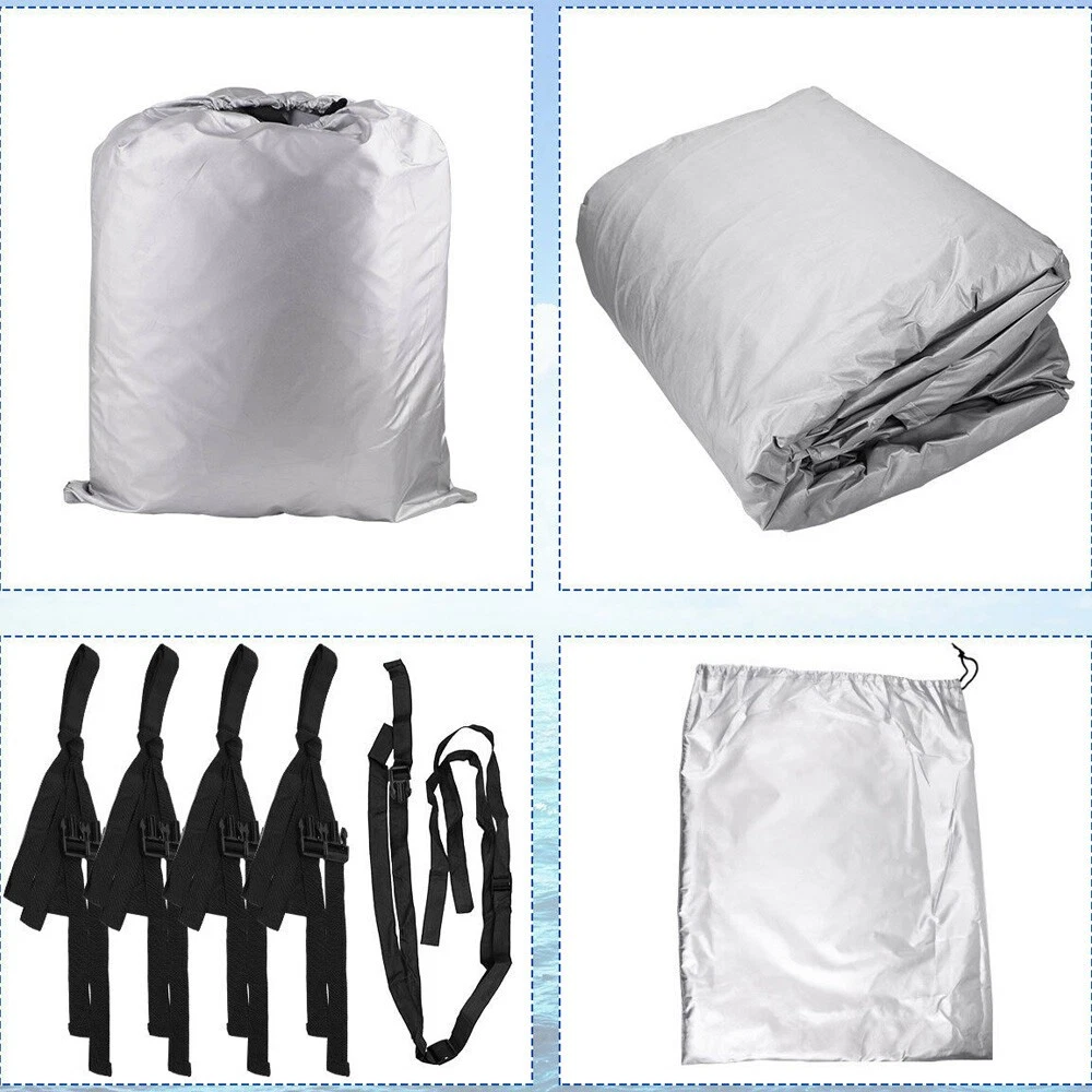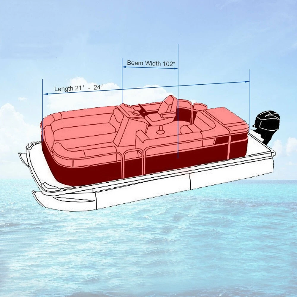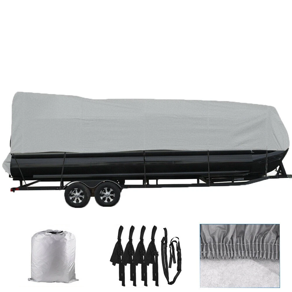 17 18 19 20ft 21 22 23 24ft Heavy Duty Pontoon Boat Cover Waterproof Blue Grey Specifications: Fit boat up to 21'-24'(Length),102''(Beam Width) Fit boat up to 17'-20'(Length),96''(Beam Width) Package Includes: 1 x Boat Cover +5 x Tie-down Ropes+1 x Carry Bag Features: Won't shrink or stretch Resistant to mildew and UV damage Quick release buckles and strap system Elastic hem and double stitched seams Fabric coating technology protects against dirt and stains while providing water-resistance Note: We will provide you the best innovative, quality products & professional services with competitive prices.If you have any questions, pls feel free to contact us. On Aug 11, 2025 at 20:50:05 PDT, seller added the following information: