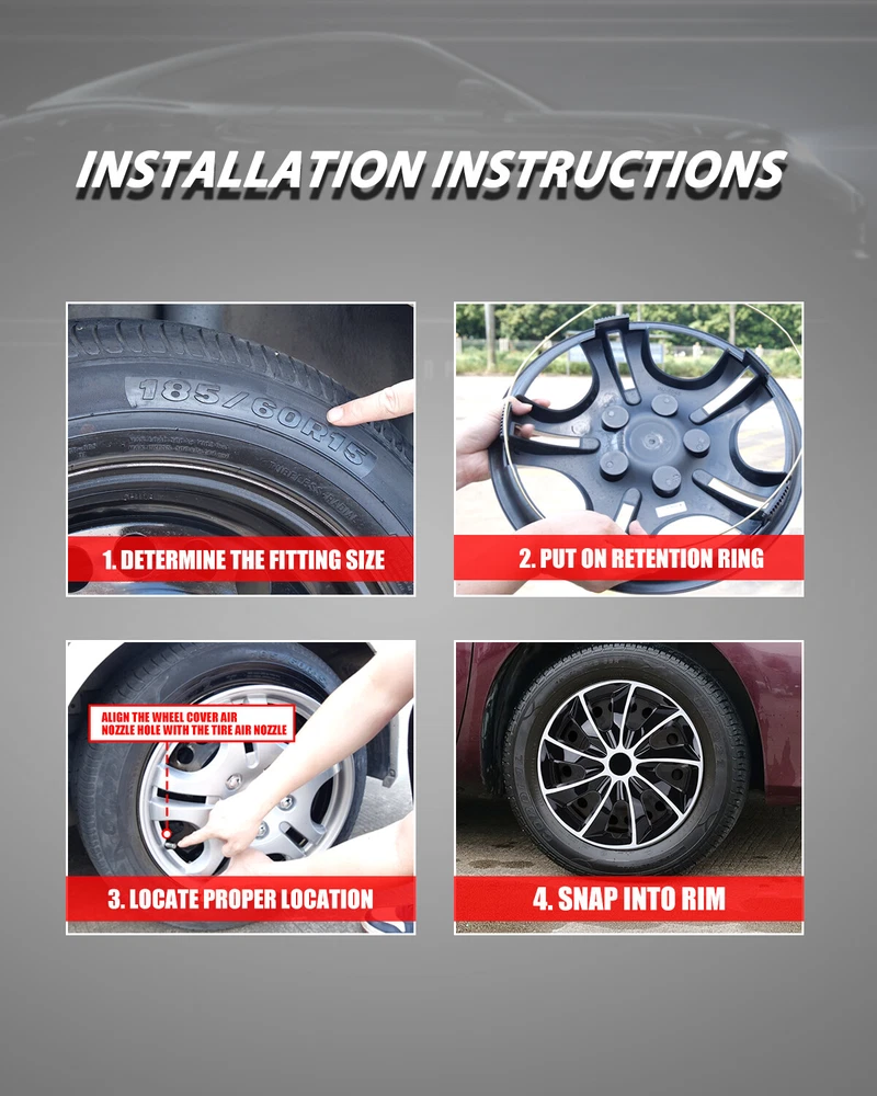 Home Payment Shipping Return Policy About Us Contact Us Feedback Title Other Car Refrigerator Front Bumper Rear Bumper Fender Flares Inner Fenders Side Steps Running Board A-Pillar Light Mount Brackets Headlights For Ford For Dodge For Chevrolet For Toyota For Mitsubishi Taillights For Chevrolet For Toyota For Ford For Jeep For Dodge For Honda For Nissan For Cadillac Fog Lights For Jeep For Dodge For Chrysler For Ford For Toyota For Chevrolet For Nissan For Lexus For GMC For Cadillac For BMW For Mercedes Benz LED Headlights For Ford For Dodge For Chevrolet For Toyota LED Taillights For Toyota For Chevrolet For Ford For Jeep For GMC For Honda For Cadillac LED Fog Lights For Toyota For Ford For Chevrolet For Mercedes Benz Jeep Headlights Tail Lights Fog Lights Refrigerator Bumper Fender Flares Inner Fenders A Pillar Light Mount Brackets Side Step More Chevrolet Headlights Tail Lights Fog Lights Refrigerator Bumper Ford Headlights Tail Lights Fog Lights Refrigerator Bumper Toyota Headlights Tail Lights Fog Lights Refrigerator Bumper Dodge Headlights Tail Lights Fog Lights Refrigerator Bumper GMC Headlights Tail Lights Fog Lights Refrigerator Bumper Product Features ✴ PERFECT FIT: This wheel hub cap is specifically designed to perfectly fit for 17-inch wheels, ensuring a seamless match and enhanced aesthetics. It complements the overall design of the vehicle, elevating its visual appeal. ✴ HIGH-QUALITY MATERIAL: Constructed from high-quality materials, this wheel hub cap guarantees durability and longevity. It withstands various road conditions and environmental factors encountered during daily driving, maintaining its pristine condition. ✴ EASY INSTALLATION: Installing this wheel hub cap is a breeze and requires no specialized tools or modifications. It comes with a user-friendly system, allowing for a hassle-free installation process by following the provided instructions. ✴ PROTECTIVE FUNCTION: Besides its aesthetic appeal, this wheel hub cap serves as a protective barrier for the wheels. It prevents scratches and potential damage caused by stones, debris, or other objects, safeguarding the wheel's surface. ✴ AFTER-SALES SERVICE: If There Is a Loss of Product Parts, or Any Parts of The Problem, We Can Provide After-Sales Service, Please Contact Us on The Order Page. Product Specification ✴ Type: Hub caps ✴ Number in Pack: 4 ✴ Color: White Lacquer & Black Lacquer ✴ Material: ABS ✴ Compatible Wheel Diameter: 17 in ✴ Finish: Glossy ✴ Installation Type: Snap-On ✴ Model: Universal Hubcap for Iron Wheels, Not fit for Chevy Equinox All Models, TOYOTA SIENNA 17 inch models, VOLKSWAGEN GOLF 17 inch models Not fit for 2010-2011 Fusion, 2013-2018 Toyota RAV4, 2010-2011 Mercury Milan, 2008-2012 Chevy Malibu, 2007-2010 Pontiac G6, 2007-2010 Saturn Aura, 2007-2010 Saturn Aura Hybrid, 2013-2020 DODGE JOURNEY, 2015-2020 DODGE GRAND CARAVAN, 2011-2016 CHRYSLER TOWN & COUNTRY. Product Package ✴ 1 Set of 4 Hub caps and 4 retention rings Payment Delivery details Terms of sales About us Contact us Payment We accept PayPal, credit card , Apple Pay & Google Pay etc. Delivery details All items will be shipped within 1-3 business days after payment received, we will try our best to ship out as soon as we can, hope for your understanding. Please double confirm your address and contact information, which will help the delivery faster and more accurately. Note :buyers who purchase international products need to pay import tariffs!!! Terms of sales Professional installation is highly recommended. Any problem of the item please feel free to contact us first , please D o Not leave negative feedback before that, or simply return it within 60 Days in original condition. We will resolve it for you ASAP. About us Any questions please do not hesitate to contact us directly by eBay message . We will reply you within 24 hours asap, thanks for your understanding. Contact us Should you have any problem or require any further information please feel free to contact us . If you are satisfied with our product and service, please kindly leave us a positive feedback. On Jan 24, 2025 at 18:18:10 PST, seller added the following information: