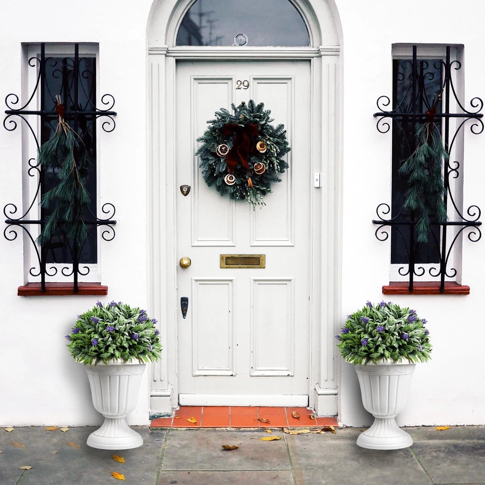 【Package&Weight】: Every set including of 2 packs of plastic Lavender topiary Tree. The faux Lavender Topiary plant has a height of approximately 17in/42 cm and a width of approximately 10in/25.5cm.The total weight of plants with vases is about 2.5 kg. You can effortlessly move them around your home to create the perfect ambiance wherever you desire. The manageable size and weight make it a breeze to reposition without any hassle. 【Durable Material】:The leaves of artificial lavender ball tree are made of superior PE material, The bottom vase is made of high hardness PP material. They are free from any unpleasant odors, ensuring a fresh and natural feel. The leaves feature realistic textures that are both UV and weather-resistant, making them suitable for outdoor display without any loss of quality. 【Easy to Maintain】: Say goodbye to the time-consuming tasks of trimming and watering. Our artificial plants require minimal care – simply wipe them down with a damp cloth to keep them looking their best. Enjoy the lush greenery without the fuss of traditional plant care. 【Versatile Decor for Any Space】: Perfect for a variety of settings, these topiaries can enhance the decor of your dining room, bedroom, porch, hallway, or any indoor or outdoor space. Their timeless design and natural appearance add a touch of elegance and life to any environment. 【Ideal Gift for Nature Lovers】: Give the gift of life and natural ambiance with our artificial topiary set. It's an excellent choice for those who appreciate the beauty of nature but may not have the time or inclination for live plants. This thoughtful gift brings a touch of the outdoors in, making any space feel more vibrant and alive.