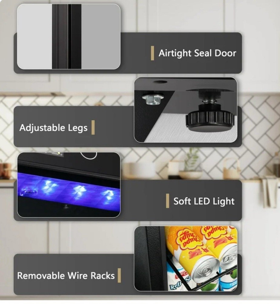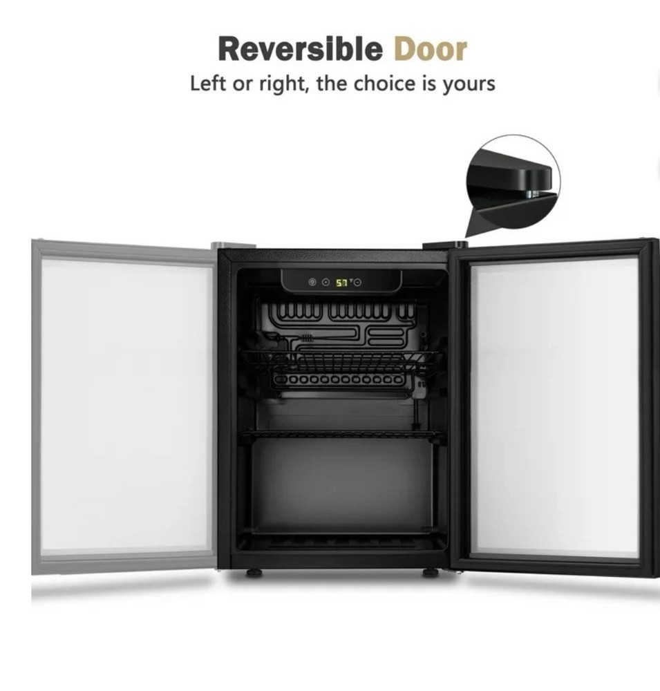 This mini wine fridge is a game-changer for any wine lover! Its compact size fits perfectly in small spaces, and the sleek glass door lets you showcase your collection. The adjustable shelves make it easy to store different bottle sizes, and it keeps everything at the perfect temperature. Super stylish and functional—definitely worth it!