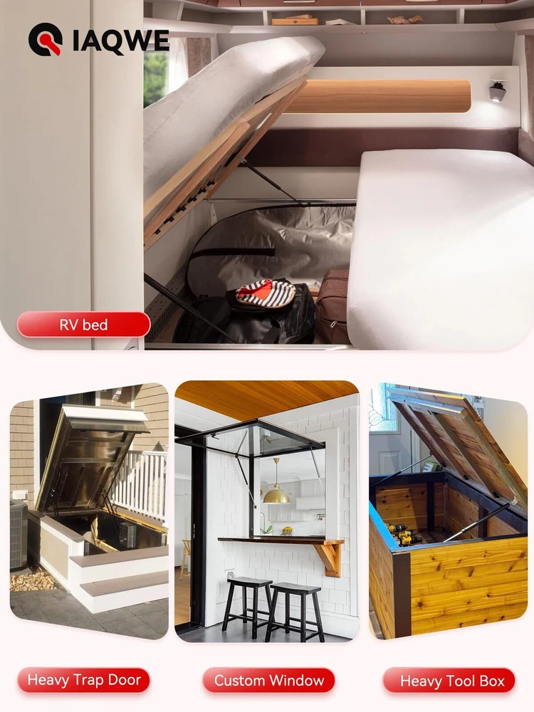 17Inch 150Lbs/667N Gas Struts Spring Shocks Lift Support with L Brackets for RV Murphy Bed Heavy Duty Tool Box Cabinet Trap Basement Door Floor Hatch Lid Truck Canopy Cover Trailer 2pcs by [GAS STRUTS PARAMETER] Force: 200Lbs 20 Inch per Strut, a pair of 2 struts. Extended Length: 16.96”, Compressed Length: 10.80”. Ball Joint Diameter: 10mm. Very Strong! Can not compress directly by your hands. [150LBS 17 INCH GAS STRUTS] Suitable for RV Queen Bed, travel trailer ramp, Camper Shell, Bar Window, Tonneau Cover, Chicken Coop, Heavy Duty, Large Cabinet, Floor Hatch and so on. [150LBS GAS STRUTS] Package include Struts* 2 with L-type Mounts* 4, Installation Guide* 1. Scope of application: 113-165lbs Lid Cover. [PREMIUM 17 INCH GAS SPRING]: gas spring can work normally in patio, topper window, Underground hatch, boat, garbage bin cover, tool box lid, tent and other outdoor areas. As the best and reliable gas spring manufacturer, will always stand behind you to provide you with the strongest support. [GAS SPRING SUPPORT] Any installation and adaptation issues, just mail us via Amazon, and we will solve for you within 24 hours. Shipping We offer FREE shipping on all orders! We ship within Three business days of payment, usually sooner. We use a selection of shipping services such as UPS, FedEx, USPS etc. We only ship to the lower 48 states, no APO/FPO addresses or PO Boxes allowed. Local pickups and combined shipping options are not provided at this time. Return You can return a product for up to 30 days from the date you purchased it. Any product you return must be in the same condition you received it and in the original packaging. Please keep the receipt. Payment We accept payment by any of the following methods: PayPal Please pay as soon as possible after winning an auction, as that will allow us to post your item to you sooner! Feedback Customer satisfaction is very important to us. If you have any problem with your order, please contact us and we will do our best to make you satisfied. Contact Us If you have any queries, please contact us via ebay. We usually respond within 24 hours on weekdays. Please visit our eBay store to check out other items for sale! Thank you for shopping at our store.