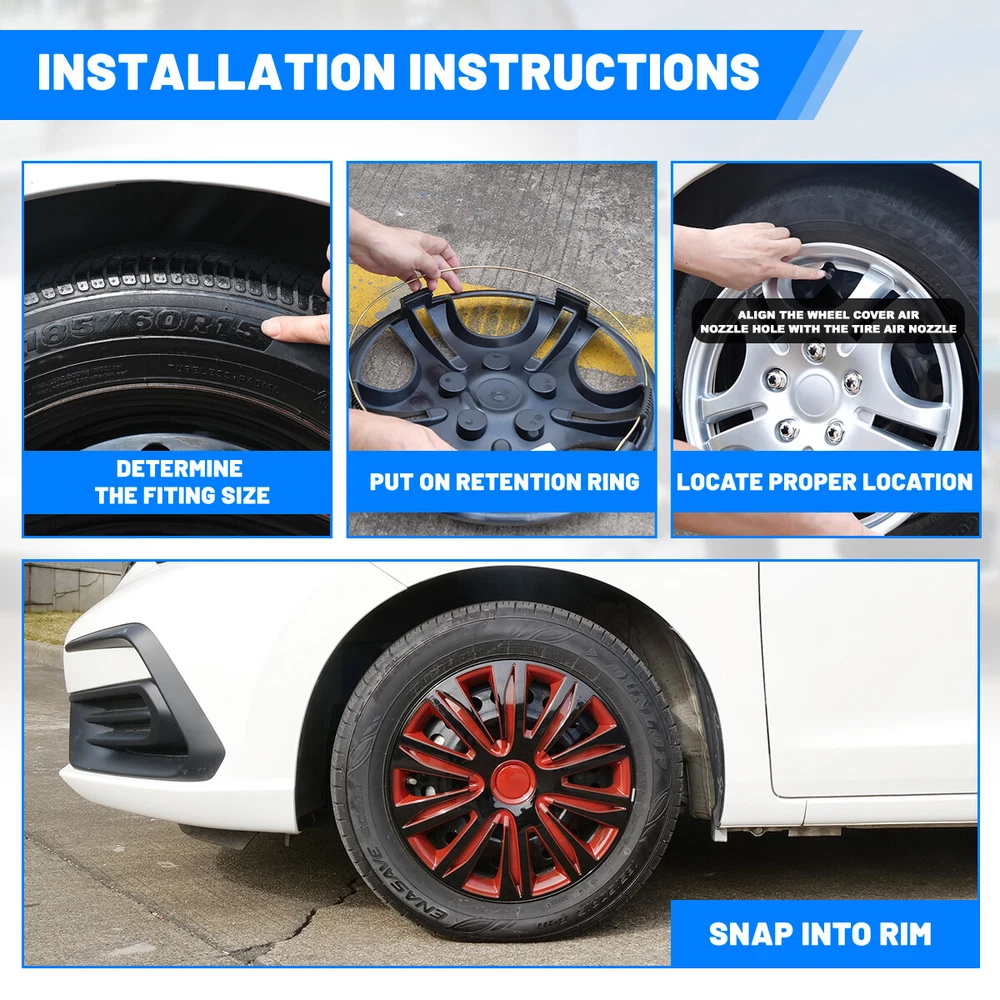 17inch Wheel Covers Full Rim Hub Caps for R17 Tire & Steel Wheels Set of 4 Feature: π Please ensure to check your tire/wheel size before purchase! designed for (p17) 17" stock steel wheels and will not fit over aluminum alloy wheels. π Designed from oem replica style wheelsβ for replacement with fast & easy snap-on installation - made from premium abs material β lab & road tested for performance and ultimate durability. π Adjustable retention rings assures firm grip gives support to the hubcaps making sure they stay in place. locate the curve on the retention ring and match to the tire air valve to install. π Installation instructions available - please refer to the images available as well as detailed instructions below for assistance. π Wolfx wheel covers fit most models of vehicle brands including acura, chevrolet, dodge, ford, honda, hyundai, kia, mazda, mitsubishi, nissan, subaru, toyota, volkswagen and more. Not fit forοΌ 2010-2011 Fusion 2010-2011 Mercury Milan 2008-2012 Chevy Malibu 2007-2010 Pontiac G6 Specification: Quantity: 4 PCS Material: ABS Color: Black & White Lacquer Wheel Size: 17 inch Finish: Glossy Placement on VehicleοΌFront/Left/Rear/Right Package Includes: 4* Wheel Cover Hubcaps Payment Delivery details Terms of sales About us Contact us Payment π We accept PayPal (Recommended), credit card, VISA, Google Pay & Discover etc. π Please submit your payment within 7 days after your purchase. π If not, eBay will automatically open an Unpaid Item Dispute on our behalf if the item(s) are not paid within 7 days. Delivery details π Please double check your delivery address and contact information. π All items will be shipped within 1 business days after payment received. π Tracking numbers will be easily accessible ASAP they are created and processed. Terms of sales π Free 30 days Return, we will cover the return post fee. π If a defective product was received, please do not hesitate to message us via eBay message. π We will response in 24 hours in business to resolve the problem π We stand behind our products. Items can be returned for exchange or full refund within 30 days from the date you receive. About us π Wolfstorm has a huge warehouse and office located in the United States. π All US domestic 48 states customers are able to benefit from the FREE SHIPPING services. π Our experienced, professional customer service representatives offers prompt and courteous service. π Best quality products, outstanding services and professional experience keep our customers. Contact us π Please feel free to contact us if you have any problems. π Emails will be replied within 24 hours in working days. π After hours emails will be replied on the next business day. On Feb 18, 2025 at 01:20:23 PST, seller added the following information: