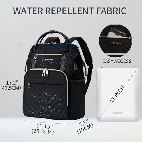 Absolutely love this backpack! The quilted design looks sleek, and the water-repellent material keeps my stuff dry. The USB port is super handy for charging on the go, and the compartments fit my 17" laptop and other essentials perfectly. Super comfortable to carry, and the seller shipped fast—highly recommend!