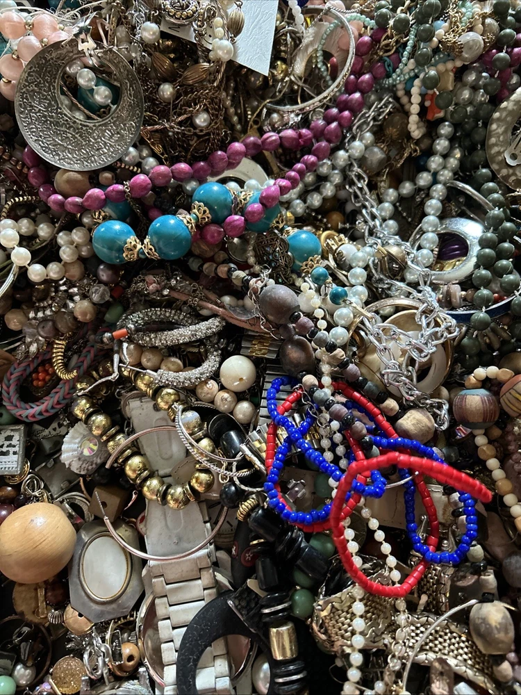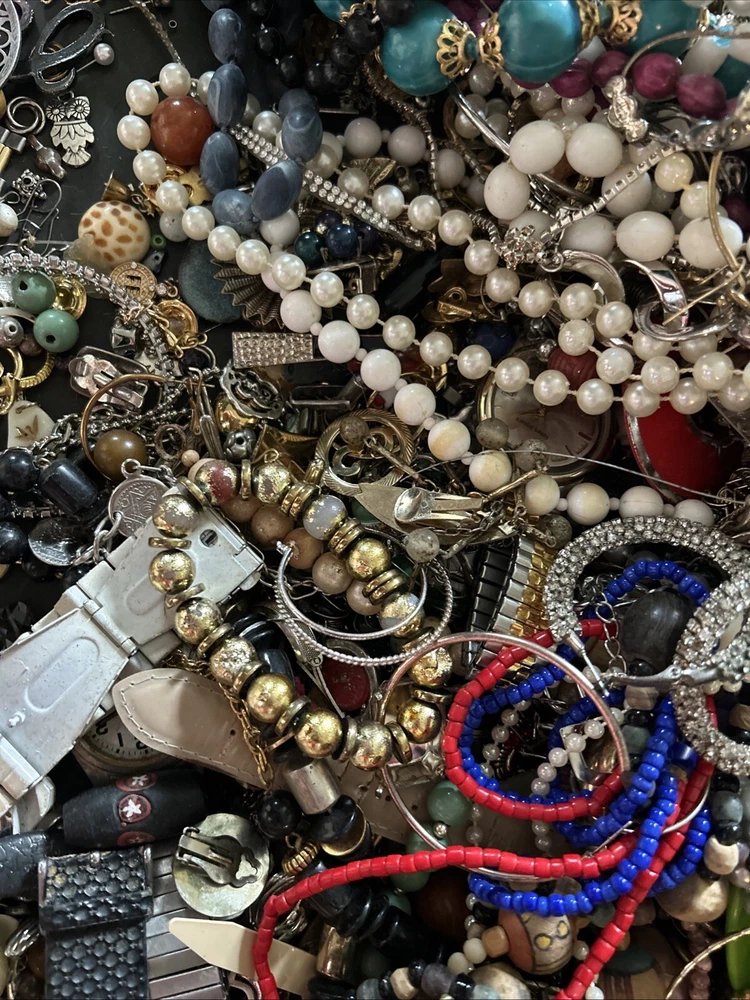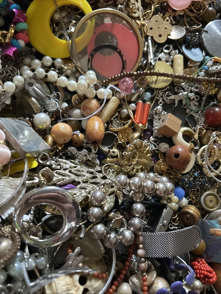 This mixed lot of scrap jewelry includes 17 pounds of materials that can be crafted into unique pieces. The lot includes a variety of materials such as junk and scrap, perfect for those who enjoy creating their own jewelry. With this collection, you can find inspiration for your own personal style and create one-of-a-kind pieces. Whether you are a seasoned jewelry maker or just starting out, this lot is perfect for you. Don't miss out on the opportunity to add these materials to your collection and let your creativity run wild.some pieces wearable others not .