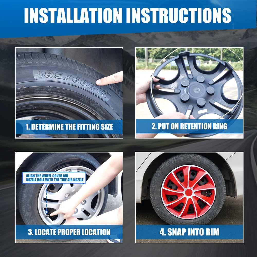 Head Lights Tail Lights Fog Lights Turn Signal Bumper Fender Flare Inner Fender Hubcaps Refrigerator Other Items for sale Head Lights Tail Lights Fog Lights Turn Signal Bumper Fender Flare Inner Fender Liners Portable Refrigerator May you Like 14" 15" 16" 17" Set of 4 Wheel Covers Snap On Full Hub Caps For Tire & Steel Rim 43.99 USD 17" Set of 4 Blue Wheel Covers Snap On Full Hub Caps fit R17 Tire & Steel Rim 62.99 USD 4PCS 17" Universal Hubcaps R17 Tire Rim Snap On Wheel Covers Black & Red Lacquer 62.99 USD 17" Glossy Set of 4 Wheel Covers Rim Snap On Hub Caps Fits R17 Tire & Rim 62.99 USD Set of 4 17" Universal Hubcaps fit R17 Tire Rim Snap On SUV Chrome Wheel Covers 51.99 USD 4PCS Black Matte 17'' Hubcaps For Toyota Nissan Chevy Wheel Covers Snap On R17 56.99 USD 17" Red Set of 4 Wheel Covers Full Rim Hub Caps fit R17 Tire & Steel Wheels Features: Universal Fit - Design for 17" wheel hubs. Please know that and check your wheel before purchase to ensure fitment. Protect Your Wheels - Keep your vehicle looking sleek and new with these universal-fit hubcaps that offer reliable protection against scratches, dings, and other types of damage. Durable - Made from high-quality ABS materials, these hubcaps are built to withstand the rigors of daily use, keep your vehicle looking great for years. Stylish - Upgrade the look of your car or truck with these sleek hubcaps to enhance the appearance of your vehicle. Easy to Install - Designed to fit most standard wheel size, these hubcaps can be quickly and easily snap on your wheels without the need for special tools, making them a great choice for busy vehicle owners. Specification: Type: Wheel Hub Caps Color: White & Red Lacquer Compatible Wheel Diameter: 17 inch / R17 Features:Car Wash Safe, Easy to Install, No Tools Required Material: ABS Number in Pack: 4 Wheel Type: Steel Placement on Vehicle: Front, Left, Rear, Right Not fit for Chevy Equinox AII Models, TOYOTA SIENNA 17 inch models, VOLKSWAGEN GOLF 17 inch models, 2010 - 2011 Fusion, 2013 - 2018 Toyota RAV4, 2010 - 2011 Mercury Milan, 2008 - 2012 Chevy Malibu, 2007 - 2010 Pontlac G6 Package Includes: 4* Wheel Cover Hubcaps Payment Shipping Return About us Contact us Payment Appreciated for the prompt payment, Contact us if bid by mistake, system open unpaid item automatically. Payment must be complete within 3 days from the date you purchase or after the end of auction. Items unpaid within 3 days of the auction end will be forfeited. We reserve the right of cancel the order and re-selling the items. Shipping All shipment will ship by UPS or USPS . All items will be ship within 1 working days , and we will ship out all orders as soon as possible after payment verified, please allow up to 1-4 business days for delivery. CANADA & International customers please note: your government might charge a duty tax (brokerage fees). We do not responsible for any custom duty or import tax. Why Choose the US Stock? 1. Us Local Shipping, No Extra Customs Cost to the US. 2. Fast Delivery: 1-4 Working days Delivery. 3. Best After-Sales Service!!! Return The buyer is responsible for all return shipping including a result of customer error or defective item. 1) If you received an incorrect, damaged, defective, or item not as described, contact us for full refund or replacement on our cost. 2) If you want to return the item, please contact us within 60 days after package received. Return products must also be in its original condition: including box, packaging and all other accessories. About us We are the best auto parts, we have been pursuing excellence, continuous exploration as the slogan, let customer satisfaction is our purpose! We adhere to the United States local delivery, one year warranty! Welcome! Contact us How Should You Contact us? Please Read The Item Description And See if The item Fits Your Vehicle Exactly. If You Found Any questions, Feel Free to email us by "Ask a question" Our Office Hours Are Monday - Friday 8:00am - 5:00pm PST / 11:00am - 8:000pm ET, We Do Not Answer Any E-Mails On Weekend, And We Will Reply All E-Mails In The Order It Was Receive. All E-Mail Take Us Around 24 Hours To Respond To Any E-Mail. We Are Close During The Weekends And We Do Not Answer Any E-Mails During That Time.