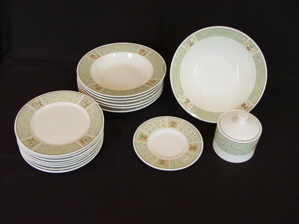 SUBJECT TO END ANYTIME 17 SALAD PLATES BOWLS SALAD PLATE SUGAR BOWL SAUCER BRANDYWINE SANGO DISHES DISH PIECE COUNT: 17 PIECES 8 SALAD PLATES: 7 5/8" // 1 SUGAR BOWL WITH LID: 3 7/8" // 1 SERVING BOWL: 9" ROUND // 6 RIM SOUP BOWLS: 8 3/4" // 1 SAUCER: 6 1/4" CHIP FREE; CRACK FREE EXCELLENT CONDITION SHOWN Check out our other items SIGN UP FOR NEWSLETTER & SALES NOTIFICATIONS at http://stores.ebay.com/LifestyleProductsRUs Be sure to add me to your favorites list ! BE SURE YOU CLEARLY UNDERSTAND ALL OF THE TERMS AND CONDITIONS OF THE SALE, INCLUDING SHIPPING/HANDLING COST, BEFORE BIDDING/BUYING PLEASE READ THE INFO PROVIDED THOROUGHLY IT IS IMPORTANT THAT YOU SEE THE VALUE OR FEEL GOOD ABOUT THE TOTAL TRANSACTION BEFORE BIDDING / BUYING. A SAVVY SHOPPER LOOKS AT THE TOTAL TRANSACTION TO HER / HIM IT IS UNFAIR & UNREASONABLE TO BID WITH FULL KNOWLEDGE OF THE CONDITIONS & THEN LEAVE SELLER A LOW RATING IN THE 5 STAR DETAILED FEEDBACK or LESS THAN POSITIVE FEEDBACK OUR GOAL IS TO PROVIDE WIN-WIN TRANSACTIONS FOR THE BUYER & THE SELLER GETTING HIGH 5 STAR DETAIL FEEDBACK RATINGS AS A SELLER IS A MUST TO ENABLE US TO CONTINUE TO BRING THE WIDE ASSORTMENT OF MERCHANDISE THAT DETERMINES OUR STATUS WITH EBAY FINAL SALE AS IS. BUYER MUST MAKE PAYMENT WITHIN 2 DAYS. ALL BUYERS AGREE TO PAY IN U.S. CURRENCY. S/H IS NON-NEGOTIABLE & NON-REFUNDABLE-COVERS SHIPPING & OTHER COSTS RELATED TO SALE. CANCELLATION-RESTOCKING FEE: 30% OF TOTAL TRANSACTION (MERCHANDISE + SHIPPING FEE) IS NON-REFUNDABLE FOR ANY CANCELLATION BUYER REQUEST & SELLER APPROVES. SHIPPING COST PAID BY SELLER MUST BE REIMBURSED BY BUYER IF RETURN REQUEST IS APPROVED ALONG WITH RETURN SHIPPING COST PAID BY BUYER. THANKS AND GOD BLESS!!! PLEASE READ PAYMENT INSTRUCTIONS BEFORE BIDDING!!! International Buyers – Please Note: Import duties, taxes and charges are not included in the item price or shipping charges. These charges are the buyer's responsibility. Please check with your country's customs office to determine what these additional costs will be prior to bidding/buying. These charges are normally collected by the delivering freight (shipping) company or when you pick the item up – do not confuse them for additional shipping charges. We do not mark merchandise values below value or mark items as "gifts" US and International government regulations prohibit such behavior. Request shipping/handling fee before bidding.