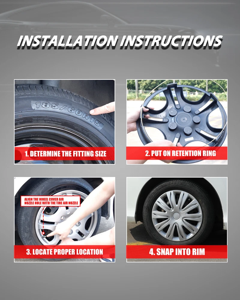 Home Payment Shipping Return Policy About Us Contact Us Feedback Title Other Car Refrigerator Front Bumper Rear Bumper Fender Flares Inner Fenders Side Steps Running Board A-Pillar Light Mount Brackets Headlights For Ford For Dodge For Chevrolet For Toyota For Mitsubishi Taillights For Chevrolet For Toyota For Ford For Jeep For Dodge For Honda For Nissan For Cadillac Fog Lights For Jeep For Dodge For Chrysler For Ford For Toyota For Chevrolet For Nissan For Lexus For GMC For Cadillac For BMW For Mercedes Benz LED Headlights For Ford For Dodge For Chevrolet For Toyota LED Taillights For Toyota For Chevrolet For Ford For Jeep For GMC For Honda For Cadillac LED Fog Lights For Toyota For Ford For Chevrolet For Mercedes Benz Jeep Headlights Tail Lights Fog Lights Refrigerator Bumper Fender Flares Inner Fenders A Pillar Light Mount Brackets Side Step More Chevrolet Headlights Tail Lights Fog Lights Refrigerator Bumper Ford Headlights Tail Lights Fog Lights Refrigerator Bumper Toyota Headlights Tail Lights Fog Lights Refrigerator Bumper Dodge Headlights Tail Lights Fog Lights Refrigerator Bumper GMC Headlights Tail Lights Fog Lights Refrigerator Bumper About this item ✴ Universal Fit - Design for 17" iron hubs,NOT for aluminum alloy hubs. Please know that and check your wheel before purchase to ensure fitment. ✴ Protect Your Wheels - Keep your vehicle looking sleek and new with these universal-fit hubcaps that offer reliable protection against scratches, dings, and other types of damage. ✴ Easy to Install - Designed to fit most standard wheel size, these hubcaps can be quickly and easily snap on your wheels without the need for special tools, making them a great choice for busy vehicle owners. ✴ Durable - Made from high-quality ABS materials, these hubcaps are built to withstand the rigors of daily use, keep your vehicle looking great for years. ✴ Stylish - Upgrade the look of your car or truck with these sleek hubcaps to enhance the appearance of your vehicle. Wheel Covers Specification ✴ Type: Hub caps ✴ Number in Pack: 4 ✴ Color: Silver Lacquer ✴ Material: ABS ✴ Compatible Wheel Diameter: 17 in ✴ Finish: Glossy ✴ Installation Type: Snap-On ✴ Model: Universal Hubcap for Iron Wheels, Not fit for Chevy Equinox All Models, TOYOTA SIENNA 17 inch models, VOLKSWAGEN GOLF 17 inch models Not fit for 2010-2011 Fusion, 2010-2011 Mercury Milan, 2008-2012 Chevy Malibu, 2007-2010 Pontiac G6, Wheel Covers Package ✴ 1 Set of 4 Hub caps and 4 retention rings Payment Delivery details Terms of sales About us Contact us Payment We accept PayPal, credit card , Apple Pay & Google Pay etc. Delivery details All items will be shipped within 1-3 business days after payment received, we will try our best to ship out as soon as we can, hope for your understanding. Please double confirm your address and contact information, which will help the delivery faster and more accurately. Note :buyers who purchase international products need to pay import tariffs!!! Terms of sales Professional installation is highly recommended. Any problem of the item please feel free to contact us first , please D o Not leave negative feedback before that, or simply return it within 60 Days in original condition. We will resolve it for you ASAP. About us Any questions please do not hesitate to contact us directly by eBay message . We will reply you within 24 hours asap, thanks for your understanding. Contact us Should you have any problem or require any further information please feel free to contact us . If you are satisfied with our product and service, please kindly leave us a positive feedback. On Jan 4, 2025 at 01:51:10 PST, seller added the following information:
