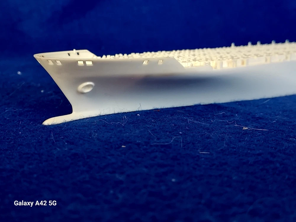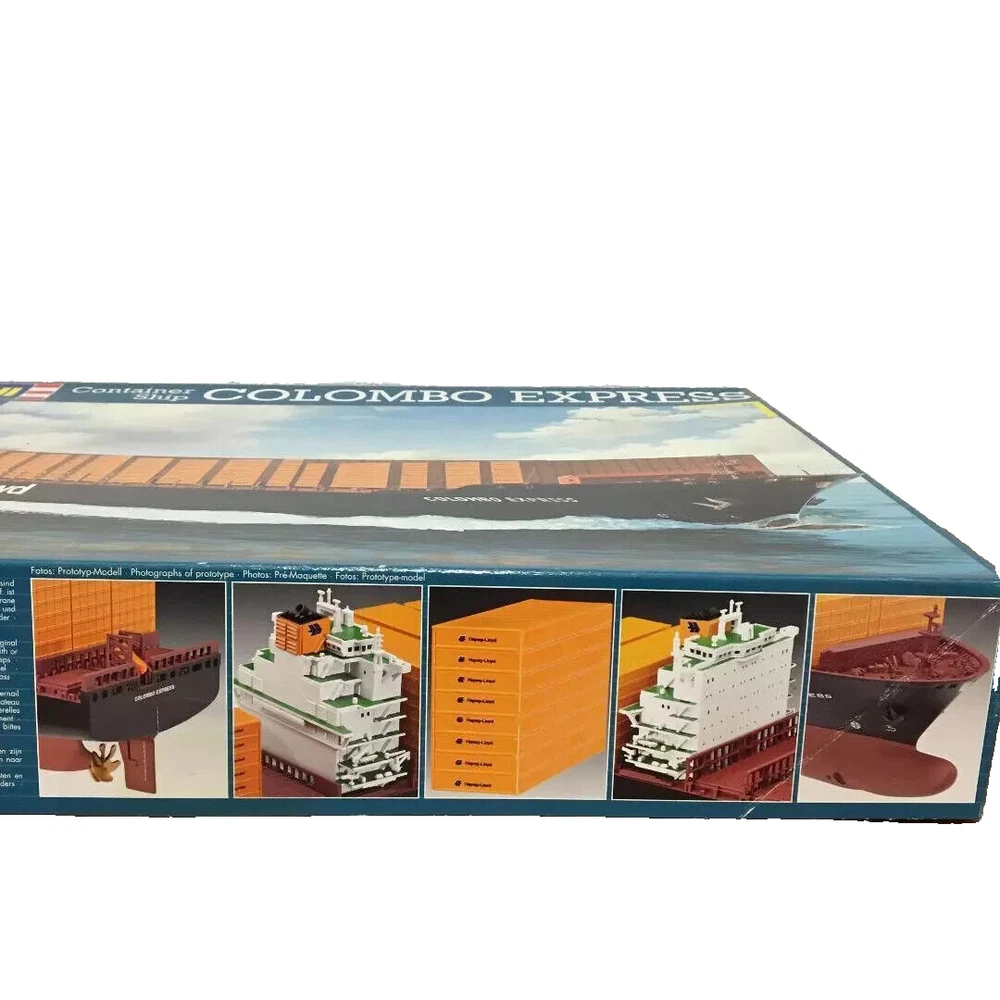 ONE OF A KIND: Revell Germany 05241 1/700 Hapag Lloyd Container Ship COLOMBO EXPRESS I have WATERLINED the hull. SEE PHOTOS The model kit has been started..main deck is attached and internal bulkheads applied;.essentially nothing more than was needed to waterline the ship. The photos don't show clearly; the waterline is straight...no warpage. Some parts have been removed from the sprues and cleaned up; primarily the above-deck Container bulkheads. These and the forcastle are shown installed for the photos only; they were not glued....They have been carefully packaged with the stand and marked. Also the stern boat skids are seen in the upper left of the photo showning the bulkhead directions..they are in that package as well. The model kit is complete, waithing to be finished. I've included decals to letter the ship for EVERGREEN (I was going to paint the hull green and do that but couldn't find alternative 1/700 decals for the containers. HO container decals are about the right size for that. The kit decals are in like-new condition. A fun project to research and start but now a round-tuit for you to finish.The kit will be carefully packed SEE PHOTOS