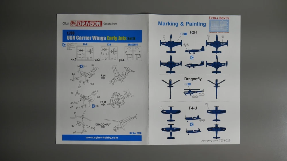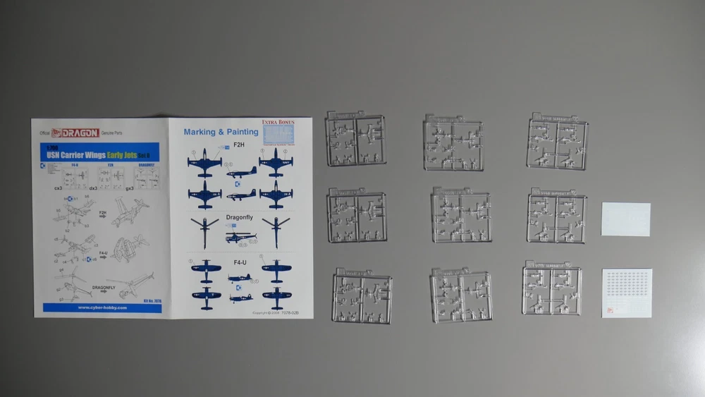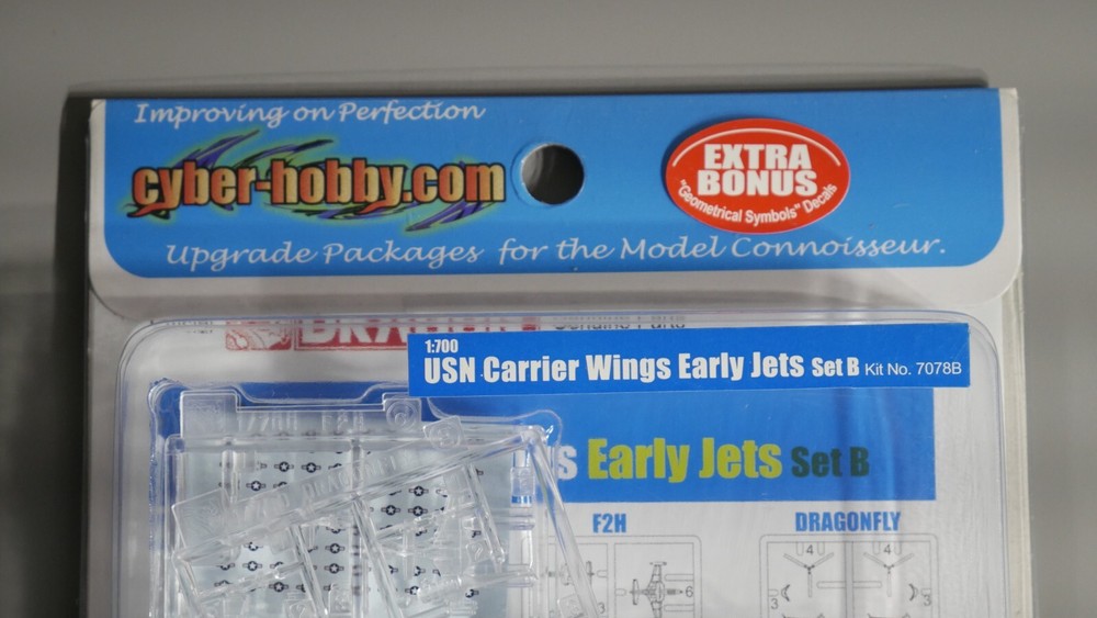Dragon Cyber Hobby 1/700 Upgrade Package USN Carrier Wings 'Early Jets Set B' #7078B . It was a brand new item. Parts and decals were taken out of the box for pictures and quality inspection only. Complete kit in the original box. Please see the pictures. Free shipping, no returns. Same or next business day shipping if paid by 2 pm Central Time, Monday through Friday.