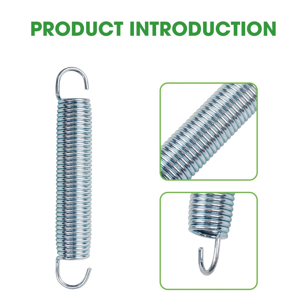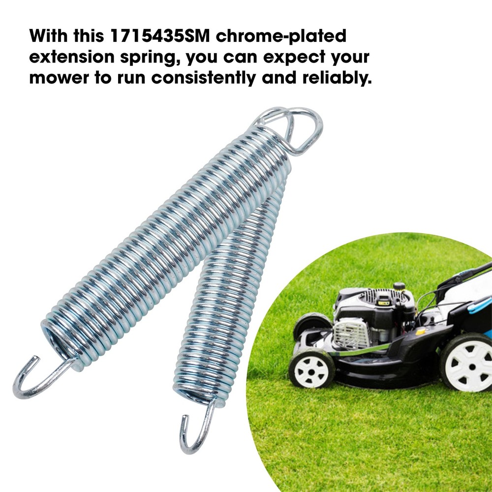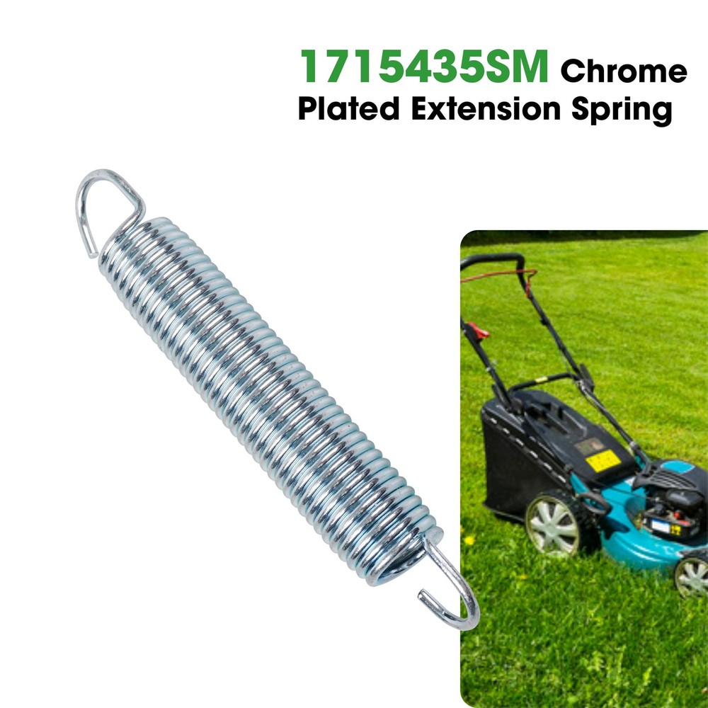 1715435SM chrome-plated extension spring for Simpli-licity lawn mowers, 1715435SM chrome-plated extension spring's size ensures a seamless connection with the relevant internal parts of the mower, which can be immediately integrated into the mower's operation system after installation, laying a solid foundation for the stable operation of the mower. In the daily operation of the mower, the spring can work together with other components to precisely control the mechanical movements and guarantee the efficiency and quality of mowing. In the working process of lawn mower, from starting operation to cutting lawn, there are strict requirements on the spring's stretching performance at different stages.1.00 extension length makes the spring play the elasticity role just right when it is subjected to tensile force. When the mower blade contacts the grass of different heights and densities, the spring can automatically adjust the degree of stretching according to the actual resistance, which not only ensures that the blade has enough power to cut off the grass stems, but also avoids affecting the effect of mowing due to overstretching or understretching. Under special working conditions such as climbing and turning, this precise extension length can also help the mower run smoothly and ensure the whole working process is smooth and efficient. The use of #1666786 chrome plating is a highlight of this extension spring. Chrome plating creates a strong and smooth protective layer on the surface of the spring, which dramatically improves the spring's abrasion resistance. In the working environment of a lawn mower, the spring is subjected to frequent vibrations, friction and impacts from various types of debris. Chrome plating not only enhances the wear resistance, but also improves the corrosion resistance of the spring. The dust and grass clippings raised during mowing may contain moisture and corrosive substances, and the chrome plating layer prevents these substances from reacting chemically with the spring substrate, prevents rusting, and always maintains the good performance of the spring, enabling it to work stably for a long period of time, reducing the frequency of replacement and lowering the maintenance cost. This 1715435SM chrome-plated extension spring for Simpli-licity lawn mowers fits the structural design of the mower and works closely with the mower after installation to ensure consistent performance of the mower's functions. The 1715435SM chrome-plated extension spring has been carefully calculated to provide just the right amount of tension under the specific working conditions of the mower, helping the mower to complete the mowing action smoothly and cope with different terrains and grass conditions. The #1666786 chrome plating creates a strong and smooth protective layer on the surface of the spring. Chrome plating not only gives the spring a brilliant appearance, but also greatly enhances its wear resistance, effectively resisting wear and corrosion from daily use and extending its service life. Each set contains 2 pieces of extension springs for simultaneous replacement or spare needs. One purchase, two guarantees, reduce the risk of mower downtime due to spring damage, to protect your mowing operation continuously. With precise extension length and stable tensile performance, the spring is able to stably control the movement of relevant parts during the operation of the mower, enhance the efficiency of mowing, make the mowing process smoother and more efficient, and easily cope with the task of large-area lawn mowing.