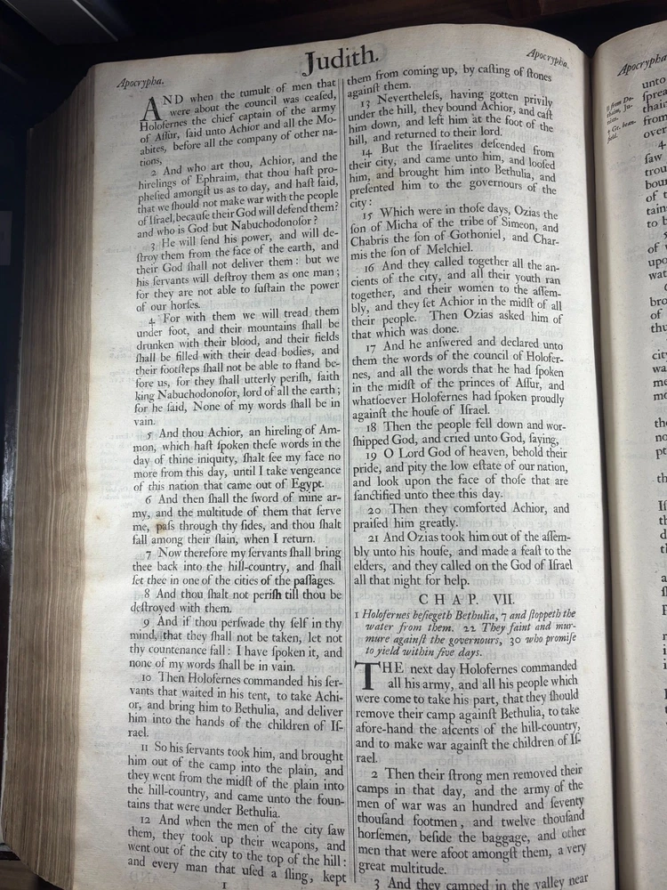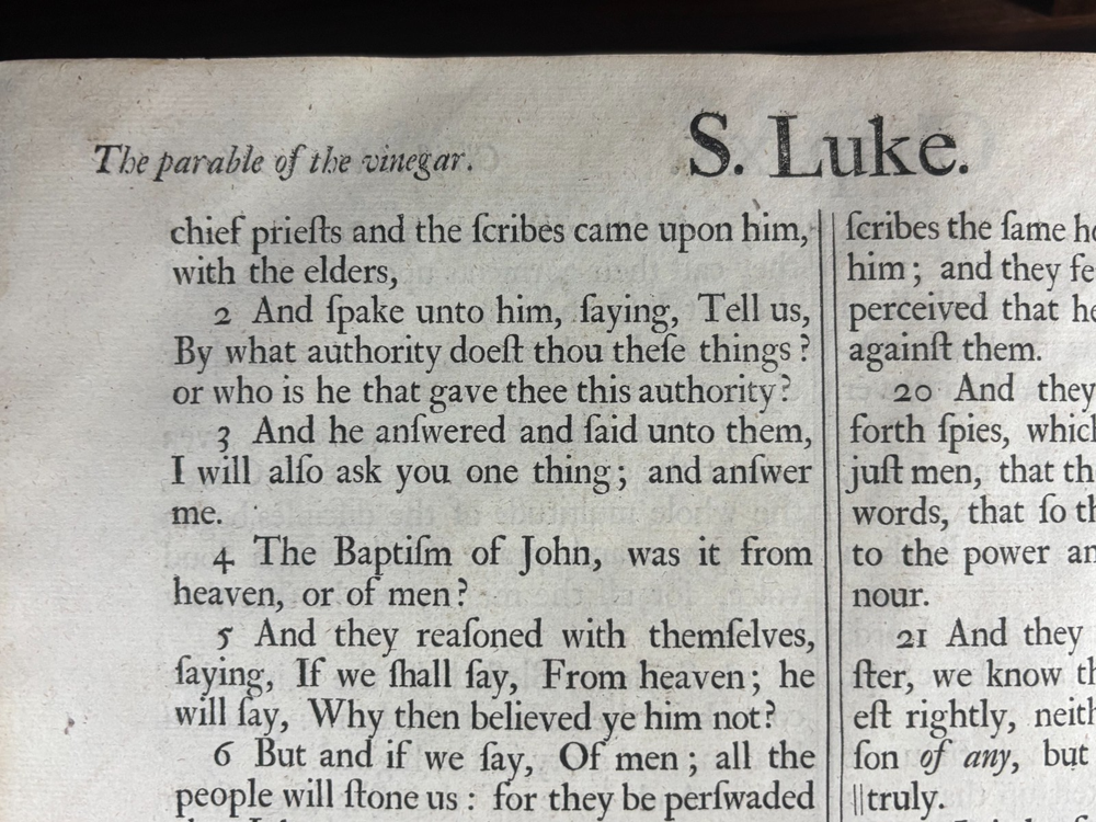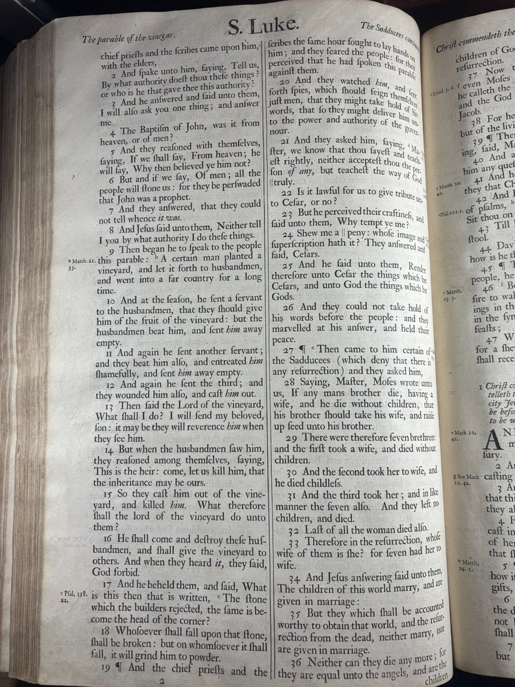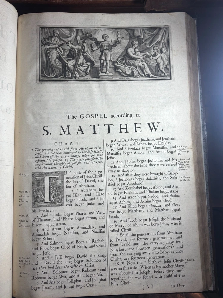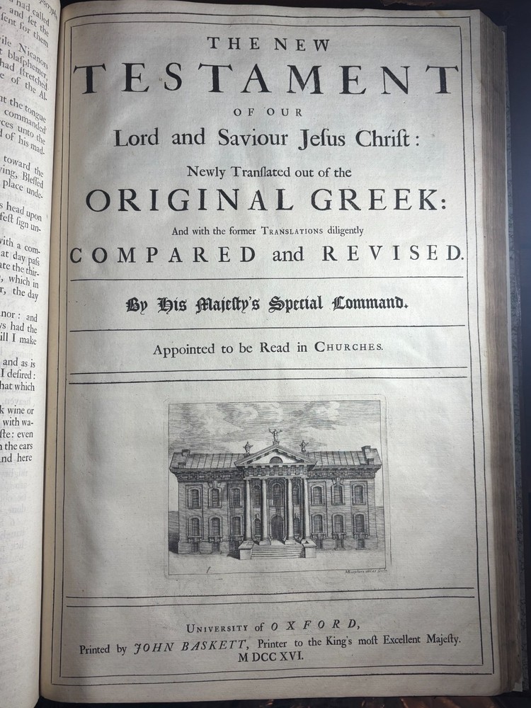 An authentic original elephant folio edition of the legendary “Vinegar Bible”, printed in Oxford by John Baskett in 1716–1717, and universally regarded as one of the most famous misprinted books in the history of English printing. This monumental church Bible is historically known for the celebrated typographical error in Luke 20, where the chapter heading famously reads: “The Parable of the Vinegar” instead of “The Parable of the Vineyard” This error, a single missing letter and single misprint, immortalized the edition and gave rise to its enduring nickname: the Vinegar Bible. The present example is the large pulpit folio format, produced specifically for ecclesiastical use, and intended to rest permanently on church pulpits. These were luxury productions, printed on heavy laid paper, with large typography, engraved illustrations, and full canonical contents including the Apocrypha. This edition is bibliographically recorded as Herbert 942. Publication Details: Printer: John Baskett Imprint: Oxford Date: 1716–1717 Format: Pulpit Folio Language: English Contents: Old Testament Apocrypha New Testament Illustrations: Copperplate engravings and decorative plates Paper: Heavy laid paper Typography: Period Baskett type. Binding: Sympathetic rebind. Original binding held in place with a more modern under layering of canvas. Historical Significance: The Vinegar Bible stands as one of the most famous printing errors ever produced in English literature. Ironically, this edition was intended to be a prestige royal Bible, printed under royal patent authority and commissioned as an official church Bible yet it became notorious for its numerous typographical errors. In addition to the famous “Vinegar/Vineyard” error, the edition is known for multiple compositional mistakes throughout the text, making it one of the most error-filled prestige Bibles ever printed. Today, original folio examples are held in major institutional collections including: National libraries University special collections Church archives Museum rare book holdings Major private collections The Vinegar Bible is widely regarded as a cornerstone artefact in the history of English printing, biblical publishing, and typographical scholarship. John Baskett, The Printer: John Baskett (1675–1742) was one of the most important royal printers of early 18th-century England. He held the title: “Printer to the King’s Most Excellent Majesty” and operated under royal patent authority in Oxford. Baskett was known for producing large-format, prestige Bibles intended for official church use, often lavishly illustrated and richly printed. His editions were among the most ambitious Bible printings of the period, combining luxury presentation with royal authorization. The Vinegar Bible represents both the height of Baskett’s ambition and the most famous failure in his printing career, becoming historically legendary due to its errors. Despite this, Baskett’s productions remain critically important in the history of English typography, royal printing privileges, and early modern publishing. Bibliographic Reference: Herbert 942 Importance to Collectors: This edition is universally recognized as: One of the most famous misprinted books in history One of the most collectible King James Bible editions A cornerstone piece in biblical bibliography A highly sought artefact in printing history A centrepiece item for museum collections A major object of interest for rare book investors Collectibility & Market Standing: Original pulpit folio Vinegar Bibles are: Rare in complete form Highly sought after Actively collected internationally Traded through major auction houses Held in institutional collections Regarded as museum-grade artefacts Values vary significantly depending on condition, completeness, binding, and provenance. Summary: An original 1716–1717 John Baskett “Vinegar Bible” pulpit folio (Herbert 942), Oxford imprint one of the most famous misprinted books in the English language, and one of the most historically important King James Bible editions ever produced. This is not merely an old Bible it is a landmark artefact in the history of printing, religion, and English literature.