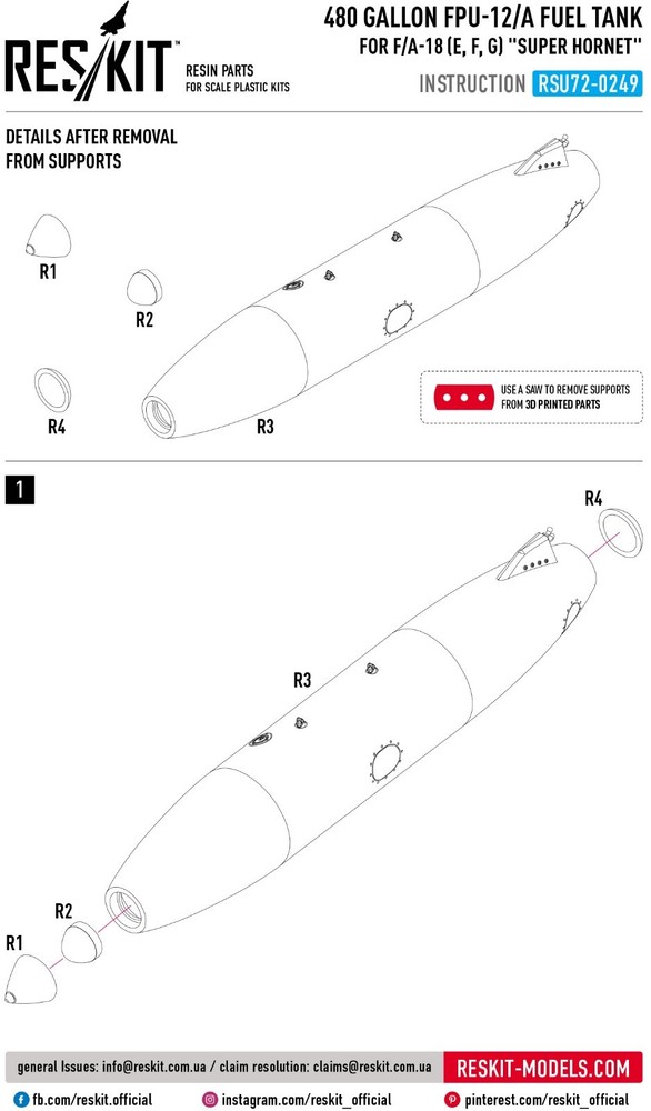 480 gallon FPU-12/A fuel tank for F/A-18 (E,F,G) "Super Hornet" (1 pcs) (3D Printed) ResKit RSU72-0249 - for Plastic Model Kit Enhance Your Scale Models with ResKit | High-Quality Resin & 3D-Printed Accessories RESKIT - Accessories for Scale Plastic Kits Upgrade your scale model collection with high-quality resin parts from ResKit. Our Ukrainian-made parts are meticulously crafted to provide the most accurate and detailed representation of original components. Whether you're building aircraft, helicopters, military vehicles, or figures, ResKit has the perfect parts to enhance your project. Scale: 1/72 Manufacturer: RESKIT (Accessories for Scale Plastic Kits) Country/Region of Manufacture : Ukraine Condition : New in Box Category: Resin & 3D accessories Type of equipment : AIRCRAFT Type of product: FUEL TANKS Recommended kit: Any ResKit is a Ukrainian manufacturer of high-quality resin parts and accessories for scale models . The products are distinguished by a high level of detail and accuracy, which allows modelers to create the most realistic models of military equipment, aviation and other objects. Key Features: Premium Quality: Our resin parts are made with the finest materials and precision engineering. Extreme Detail: Experience unparalleled detail and realism in your models. Wide Range: Choose from a vast selection of parts for various scales and subjects. Easy to Assemble: Our parts are designed for easy integration into your existing model kits. Superior quality! ResKit parts allow you to create a model with incredible detail. ---------------------------- >>> Visit our eBay store! <<< You will find everything you need at great prices. Scale model accessories are a wide range of parts, spares, and components that can help you make your model even more realistic and detailed. In our catalog, you will find everything you need to assemble and repair model cars, airplanes, ships, tanks, and weapons. Our accessories are made from high-quality materials and meet all standards. We offer a wide range of models and sizes so you can find what you need. Buy scale model accessories in our store and make your model even more unique!