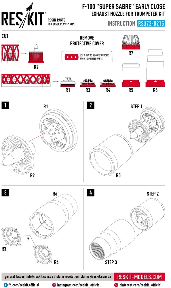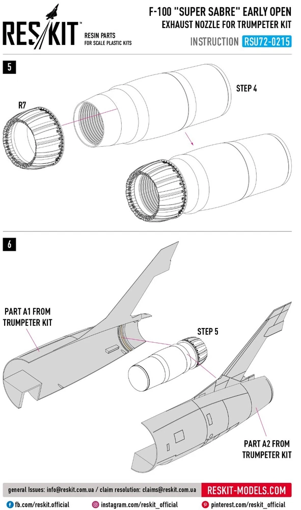 Scale: 1:72 Manufacturer: RESKIT Country/Region of Manufacture: Ukraine High-quality details. Paint: Unpainted, Unassembled, Kit do not contain paints and glue. Condition: New in Box Features: Kit F-100 "SUPER SABRE" CLOSE EARLY EXHAUST NOZZLE FOR TRUMPETER KIT (1/72) RESKIT - Accessories for Scale Plastic Kits SPECIFICATION Scale: 1/72 Type of product: Exhaust nozzles Recommended kit: Trumpeter F-100, SUPER SABRE, F 100, F100 Resin exhaust nozzles set Quality set, simple assembly. Suitable for experienced modelers, as well as for beginners. Due to the use of modern production technologies, all the details of the model fit perfectly, thanks to this, you can get an excellent result with minimal effort. ----------- This is a plastic model kit. Assembly and painting is required. Paint and glue is NOT included. Item Type: Scale model kit Commodity Attribute: Assembly The model is a plastic assembly model and needs to be assembled and painted by yourself You need an extra purchase of the glue, paint and so on!