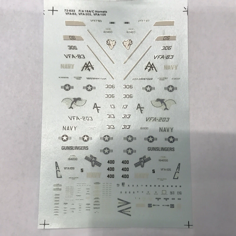 1/72 Super Scale International #72-633 F-A 18 Hornets VFA-83, 203, & 105 LHH.// Open package, great condition. All parts are present. // We do combine shipping on multiple orders for the continental United States only. We use the Global Shipping Program for everything else, and are unable to combine shipping on auctions shipping outside the USA, unfortunately. If you live outside of the continental United States and would like combined shipping, you must contact us prior to your purchase to discuss your options. We will make every effort to combine shipping but are constrained by the rules of the Global Shipping Program.
