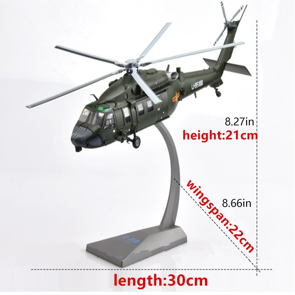 NEW-00023 1/72 Armed Straight 20 Helicopter Diecast Model Z-20 Aircraft Military Scene PRODUCT DESCRIPTION 1/72 Scale Armed Straight 20 Helicopter Model Z-20 Finished Alloy Simulation Aircraft Toy Display Ornament Collection Specifications: Model name: Armed Straight 20 Helicopter Product Name: High Simulation 1:72 Alloy aircraft Model Color: Green Material: Alloy+ABS Plastic Recommend Age: 12+y,18+ Model Size: 30x22x21 Features: Brand new and high quality plane model. Aircraft model meet your passion for aviation collectibles with beautiful design. An accurate scale model plane for collectors and enthusiasts. Plane model can be placed in the living room, bar, company, Coffee hall as home decoration , retro and elegant, noble fashion. Package Includes: 1* 1/72 Scale Armed Straight 20 Helicopter Model 1* Display Stand Note: Color might be slightly different due to the color calibration of each individual monitor. Please allow slightly measuring deviation due to manual measurement. Shipping Contact Us Our products have been sent to the US warehouse. All items will be shipped via WINIT CORPORATION. In 2-5 working days, you will receive your items. Thank you and have a nice day. If you have any question about us or items, please contact us, we will reply it as soon as possible. Shipping Our products have been sent to the US warehouse. All items will be shipped via WINIT CORPORATION. In 2-5 working days, you will receive your items. Thank you and have a nice day. Contact Us If you have any question about us or items, please contact us, we will reply it as soon as possible. PaymentShippingReturn policyAbout usContact us Copyright © - Tongtool All rights reserved | Design:Tongtool