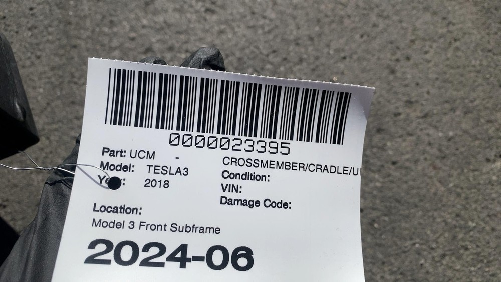 Donut Auto Dismantling Donut Auto Dismantling Rancho Cordova, CA Business Hours (PST/PDT) Mon - Fri 8am - 5pm Closed Sat & Sun CROSSMEMBER/CRADLE/UNDERCARRIA Year: 18 Model: TESLA MODEL 3 Side: Type: U Category: W Condition: Vehicle Stock #: 2024-06 Part Stock #: 0000023395 Additional notes: Model 3 Front Subframe 1103547-00-A Interchange: Also fits: Search for more parts from this donor vehicle Search for more parts for TESLA MODEL 3 Dear Valued Customers Examine all photos and read the description. Please contact us and ask any questions you have about the item. What you see in the pictures is what you will receive. Item are sold as Pictured in our ads, All the damages are marked in pictures with colored markings ........ indicated scratches, O indicate dents/dings view all photos and description. All Parts come with a 30-Day warranty Compatibility We are not responsible for compatibility, please order parts with the same part number to avoid delays and fitment issues in your purchase. Always verify O.E.M part numbers check fitment. Shipping & Return Policy For LTL and freight shipments of large items like Battery Packs, Seats, Doors, Trunks, Hoods, and other sizable body parts, a commercial address is mandatory . This must be a business equipped with a dock or forklift. Please note that deliveries cannot be made to restaurants, office buildings, or hotels. Please allow 5-11 business days from the shipping date to receive freight items. If a forklift is not available to unload your package, please ensure that you added liftgate service fee to your order. Residential deliveries have an extra charge required by LTL to cover liftgate usage and city ordinance. Be advised not all LTL freight companies offer lift gate services in every town especially in rural areas. If you do not have a commercial address or a proper residential address reach out to us to work things out LTL items can always be held at your local hub and made available for pickup. We offer free local pickup Monday through Friday, from 8:00 AM to 5:00 PM. What separates us from our competitors As Pioneers in the Tesla used parts market Donut Auto Parts is leading in the industry. We have been specializing in Tesla's for over 5 years. Our Staff are highly trained and experienced Tesla specialists. We strive to help you solve all your part needs. Local Customers For our local customers we provide installation on battery packs and drive units purchase. Drive unit and battery pack installations come with a 60 day warranty . All parts are fully tested. Using the industries leading tools, we also provide installation of other parts. Please reach out to us directly for more information. Be Advised Programming may be required for most electronic components. Donut Auto Parts is not responsible for any labor costs and other charges such as programming. NO RESTOCKING FEE Payment Payment must be submitted within 48 hours after purchase time. We have a Same handling time when paid by 2pm pst and 3-day handling time for LTL freight items. Feedback and Rating We always Strive to earn positive feedback. If you encounter an issue with one of our items, please contact us before leaving any feedback or opening a case give us the opportunity to solve your order issue. We strive to provide excellent customer service to ensure that everyone is satisfied, and to gain happy and returning customers! ALLOW US TO RESOLVE ISSUES BEFORE LEAVING YOUR FEEDBACK PLEASE CONTACT US FIRST Airbag Notification If the item above is an airbag, I certify this airbag is not subject to recall and will be shipped in accordance with hazmat shipping requirements . Powered by Checkmate