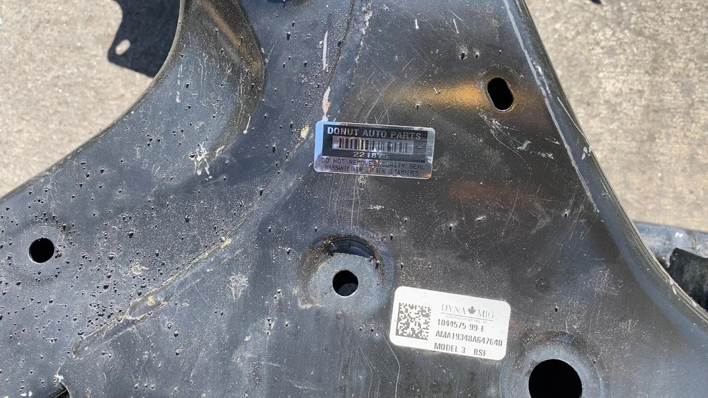 Donut Auto Dismantling Donut Auto Dismantling Rancho Cordova, CA Business Hours (PST/PDT) Mon - Fri 8am - 5pm Closed Sat & Sun Crossmember/cradle/undercarria Year: 19 Model: TESLA MODEL 3 Side: Type: Used Category: W Condition: Vehicle Stock #: 2025-06 Part Stock #: 0000068433 Additional notes: Rear Subframe | 2017-2025 Tesla Model 3 Rear Subframe Cradle Crossmember W/ Stabilizer Bar Interchange: Also fits: Search for more parts from this donor vehicle Search for more parts for TESLA MODEL 3 Dear Valued Customers Before ordering, please verify the part number and compare the physical details of your part with the photos in our listing. Tesla sometimes changes parts within the same model year, so even if the year matches, variations may exist. Examine all photos and read the description. Please contact us and ask any questions you have about the item. What you see in the pictures is what you will receive. Item are sold as Pictured in our ads, All the damages are marked in pictures with colored markings ........ indicated scratches, O indicate dents/dings view all photos and description. All Parts come with a 60-Day warranty Compatibility We are not responsible for compatibility, please order parts with the same part number to avoid delays and fitment issues in your purchase. Always verify O.E.M part numbers check fitment. Shipping & Return Policy For LTL and freight shipments: Please inspect an item before signing. For LTL and freight shipments of large items like Battery Packs, Seats, Doors, Trunks, Hoods, and other sizable body parts, a commercial address is mandatory . This must be a business equipped with a dock or forklift. Please note that deliveries cannot be made to restaurants, office buildings, or hotels. Please allow 5-11 business days from the shipping date to receive freight items. If a forklift is not available to unload your package, please ensure that you added liftgate service fee to your order. Residential deliveries have an extra charge required by LTL to cover liftgate usage and city ordinance. Be advised not all LTL freight companies offer lift gate services in every town especially in rural areas. If you do not have a commercial address or a proper residential address reach out to us to work things out LTL items can always be held at your local hub and made available for pickup. We offer free local pickup Monday through Friday, from 8:00 AM to 5:00 PM. What separates us from our competitors As Pioneers in the Tesla used parts market Donut Auto Parts is leading in the industry. We have been specializing in Tesla's for over 5 years. Our Staff are highly trained and experienced Tesla specialists. We strive to help you solve all your part needs. Local Customers For our local customers we provide installation on battery packs and drive units purchase. Drive unit and battery pack installations come with a 60 day warranty . All parts are fully tested. Using the industries leading tools, we also provide installation of other parts. Please reach out to us directly for more information. Be Advised Programming may be required for most electronic components. Donut Auto Parts is not responsible for any labor costs and other charges such as programming. NO RESTOCKING FEE Payment Payment must be submitted within 48 hours after purchase time. We have a Same handling time when paid by 2pm pst and 3-day handling time for LTL freight items. Feedback and Rating We always Strive to earn positive feedback. If you encounter an issue with one of our items, please contact us before leaving any feedback or opening a case give us the opportunity to solve your order issue. We strive to provide excellent customer service to ensure that everyone is satisfied, and to gain happy and returning customers! ALLOW US TO RESOLVE ISSUES BEFORE LEAVING YOUR FEEDBACK PLEASE CONTACT US FIRST Airbag Notification If the item above is an airbag, I certify this airbag is not subject to recall and will be shipped in accordance with hazmat shipping requirements . Powered by Checkmate